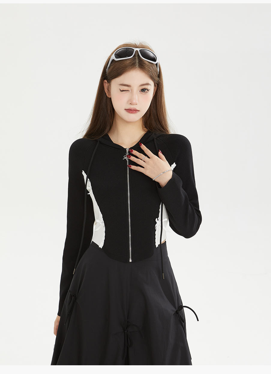 P&X设计师女装秋季休闲连帽修身时尚短款针织衫 824331198 黑色