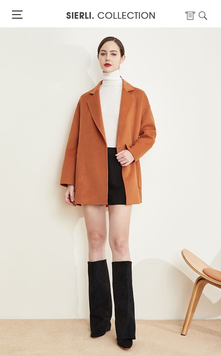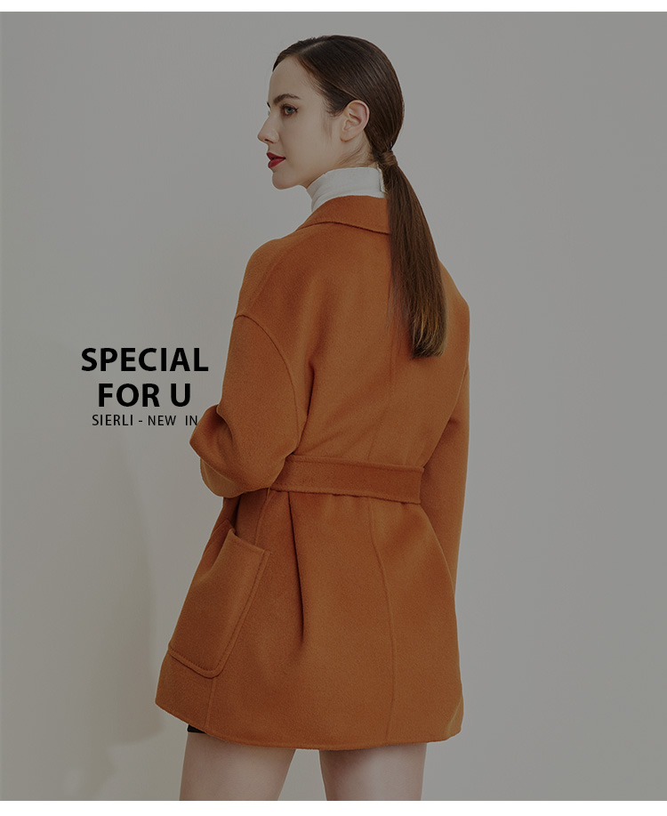LH941斯尔丽瑟俪[专柜同款]2021冬新款翻领大口袋廓形款一手长大衣女