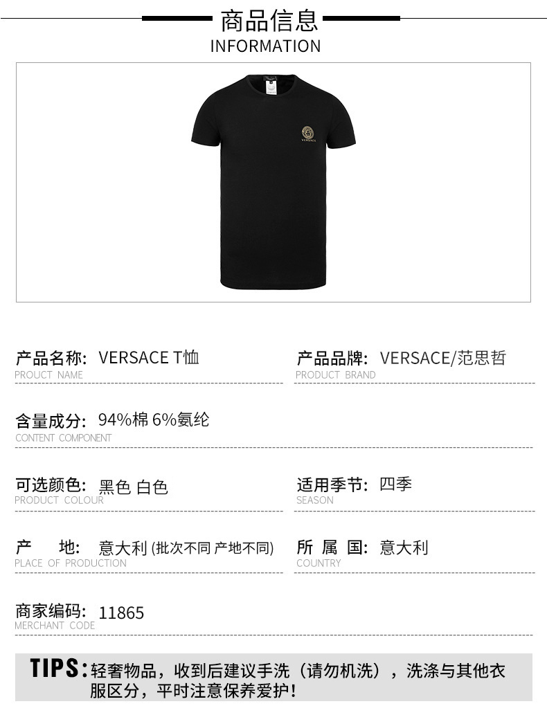 【超惠秒】VERSACE 范思哲 男士经典美杜莎logo圆领短袖T恤 12042/11865/10213