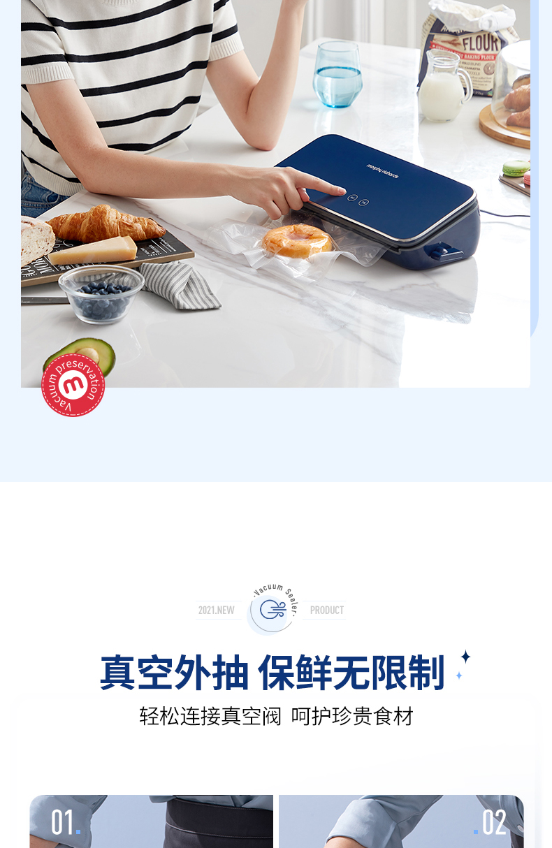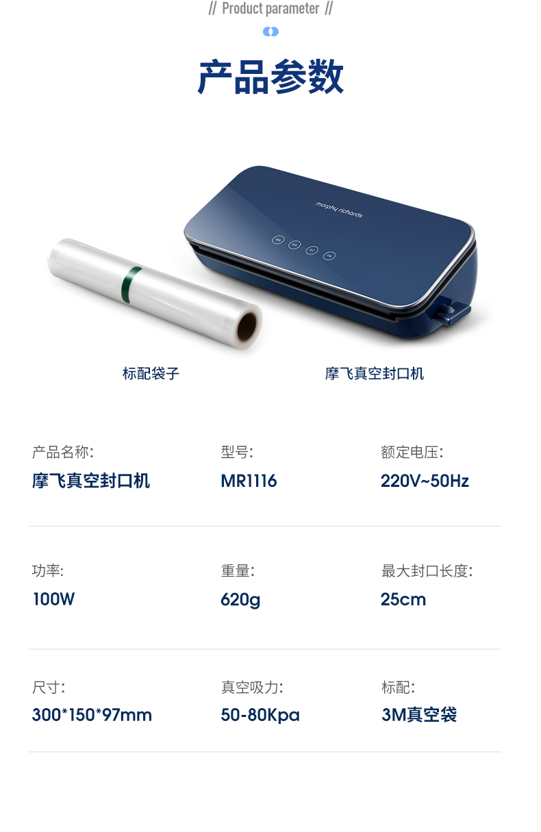 摩飞真空封口机家用食品包装抽真空压缩机MR1116干湿可抽【摩飞系列】