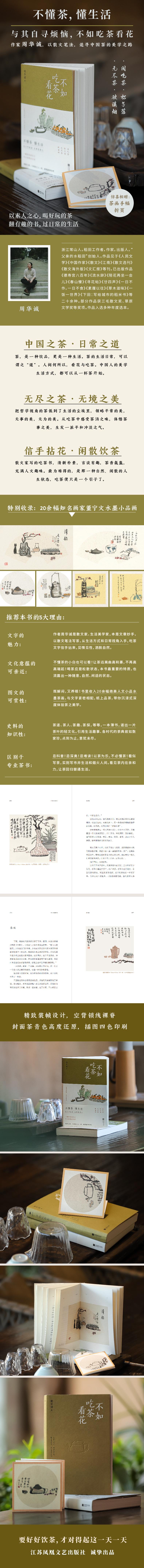 这是一本关于吃茶的随笔集。全书分四辑,从茶讲开去,叙述人们与茶相融的生活,诠释茶事里的生活美学。作者在书中引经据典,将茶融入中国传统文化,融入日常生活,从茶的性情,自然而然地跨越到喝茶人的性情。这种生活与吃茶的结合生动有趣,信息量足够丰富。