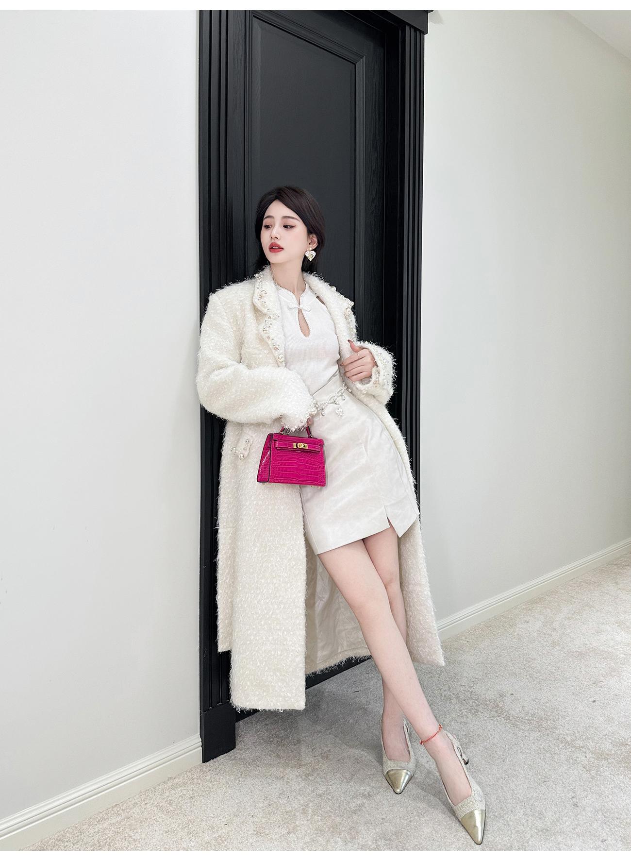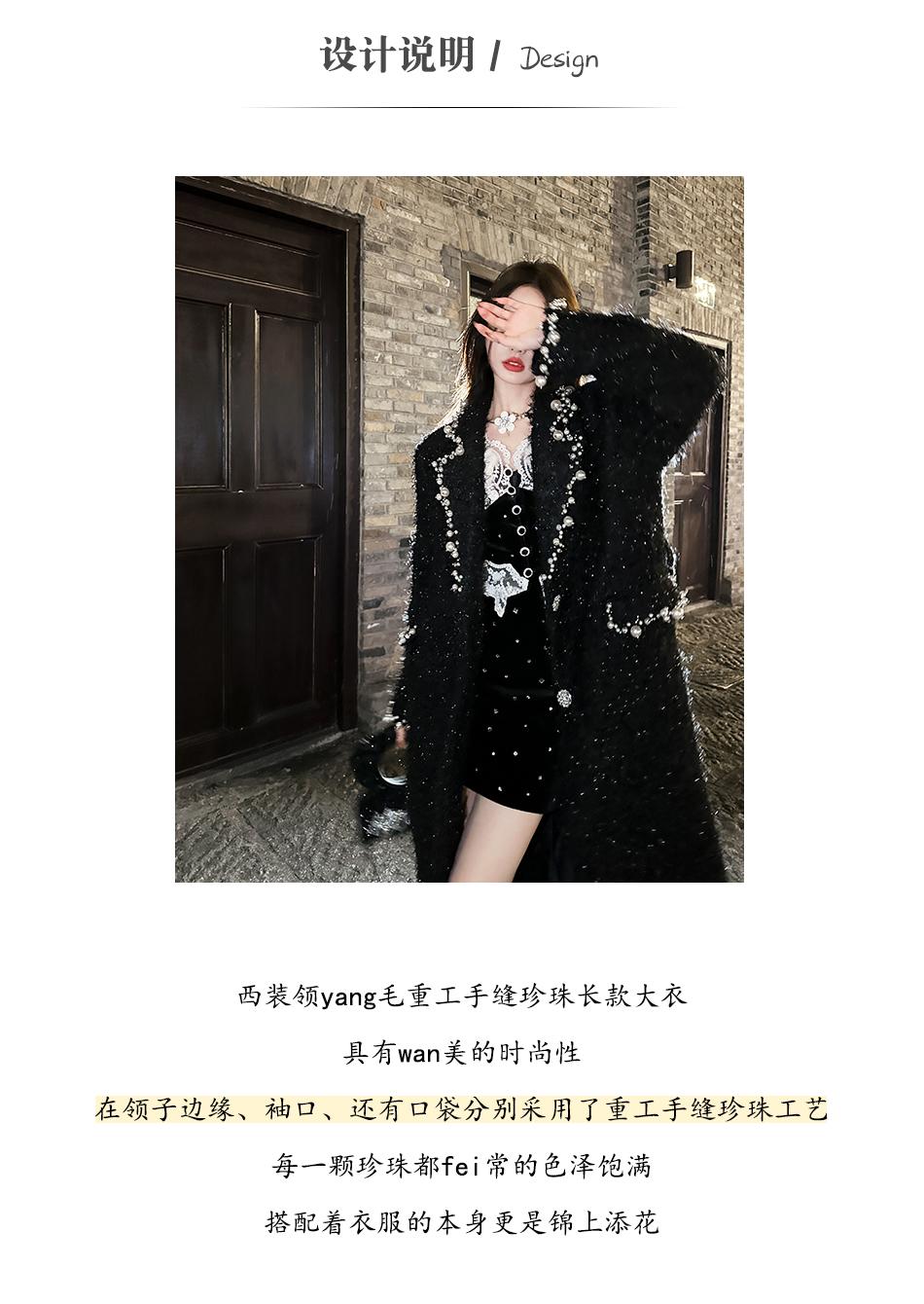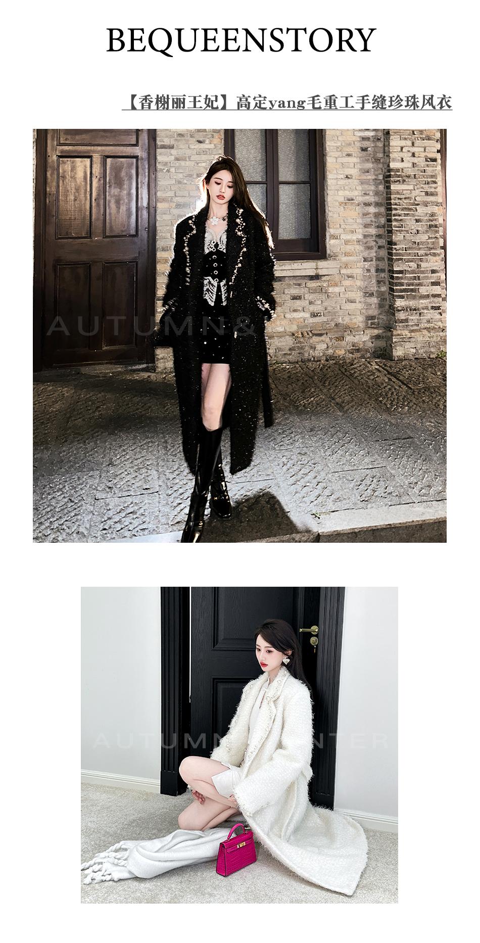 BeQueenStory【香榭丽王妃】高定羊毛重工手缝珍珠保暖毛呢外套冬