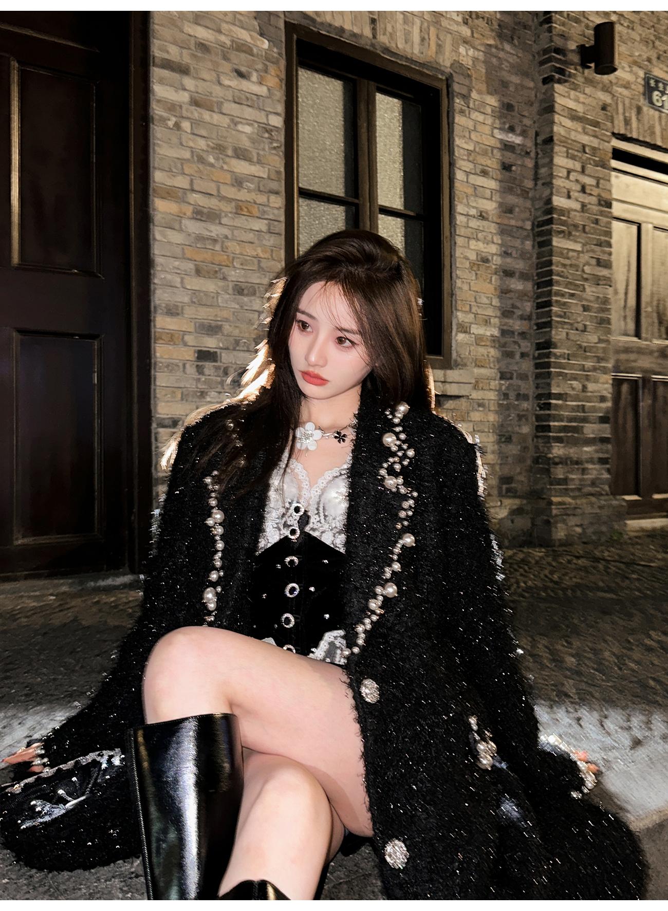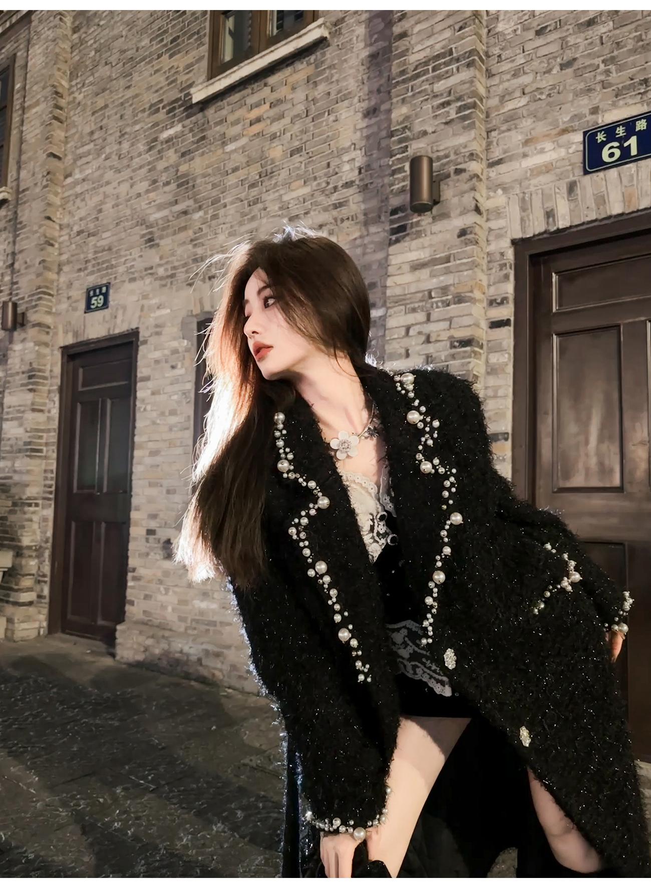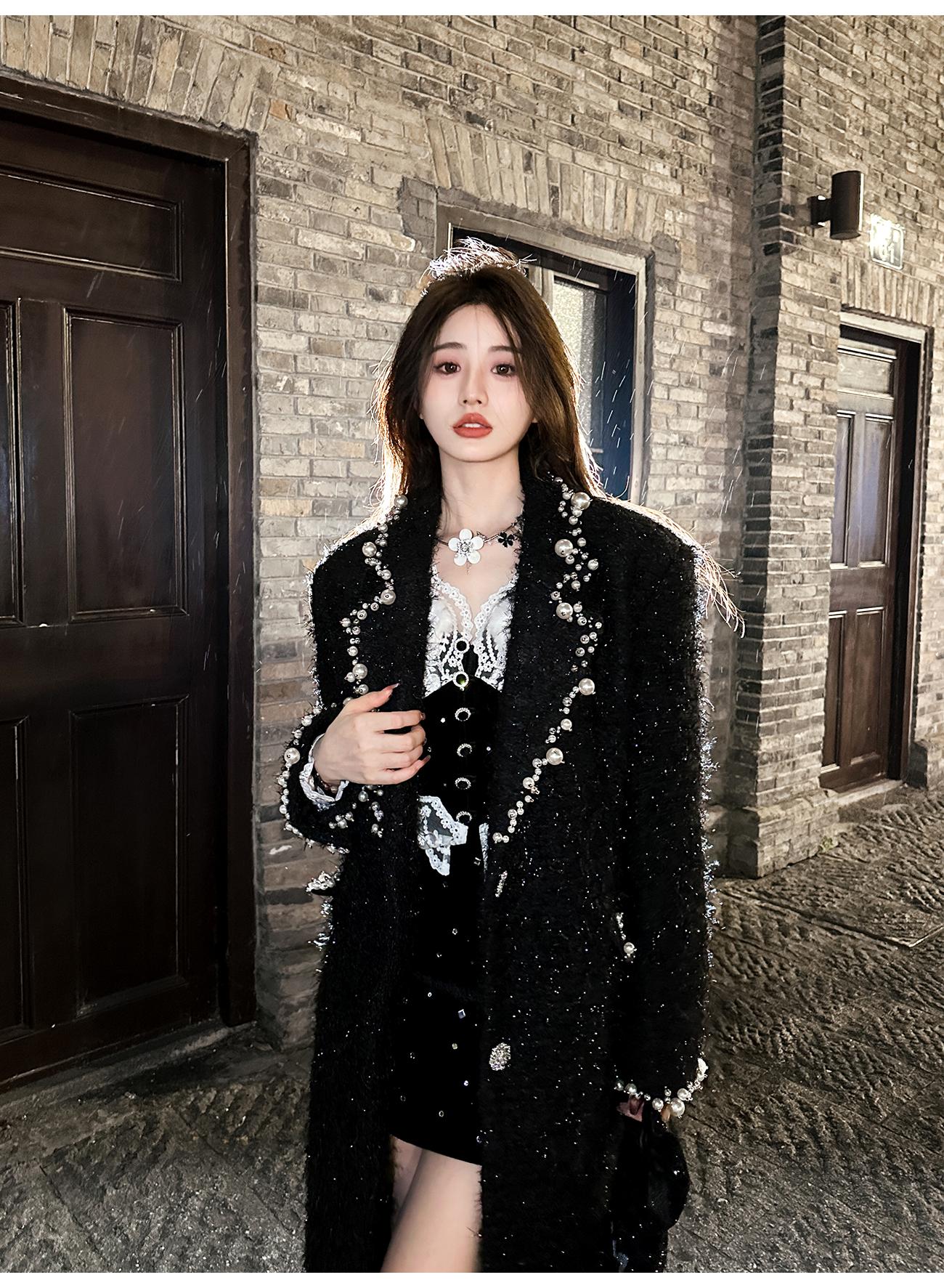 BeQueenStory【香榭丽王妃】高定羊毛重工手缝珍珠保暖毛呢外套冬