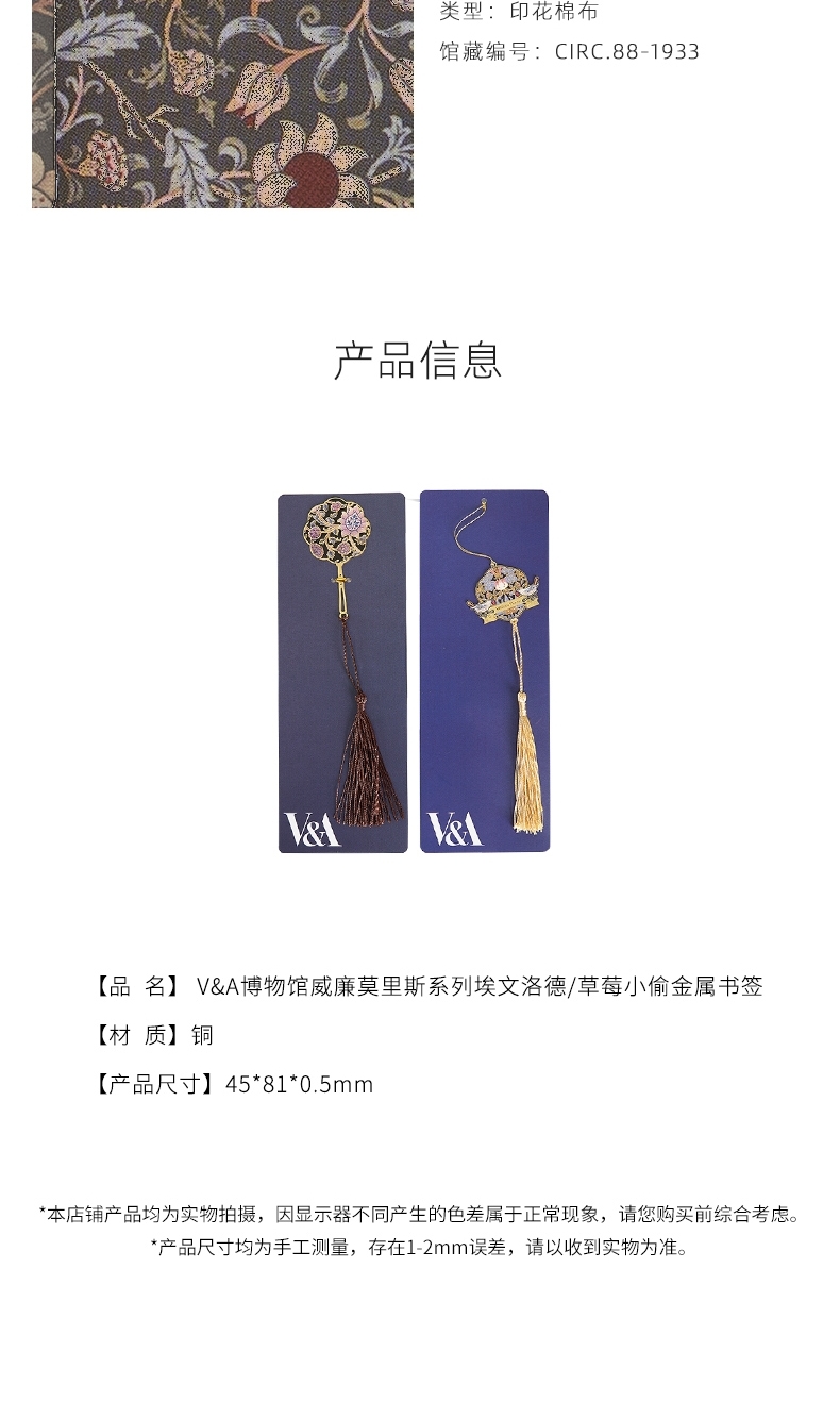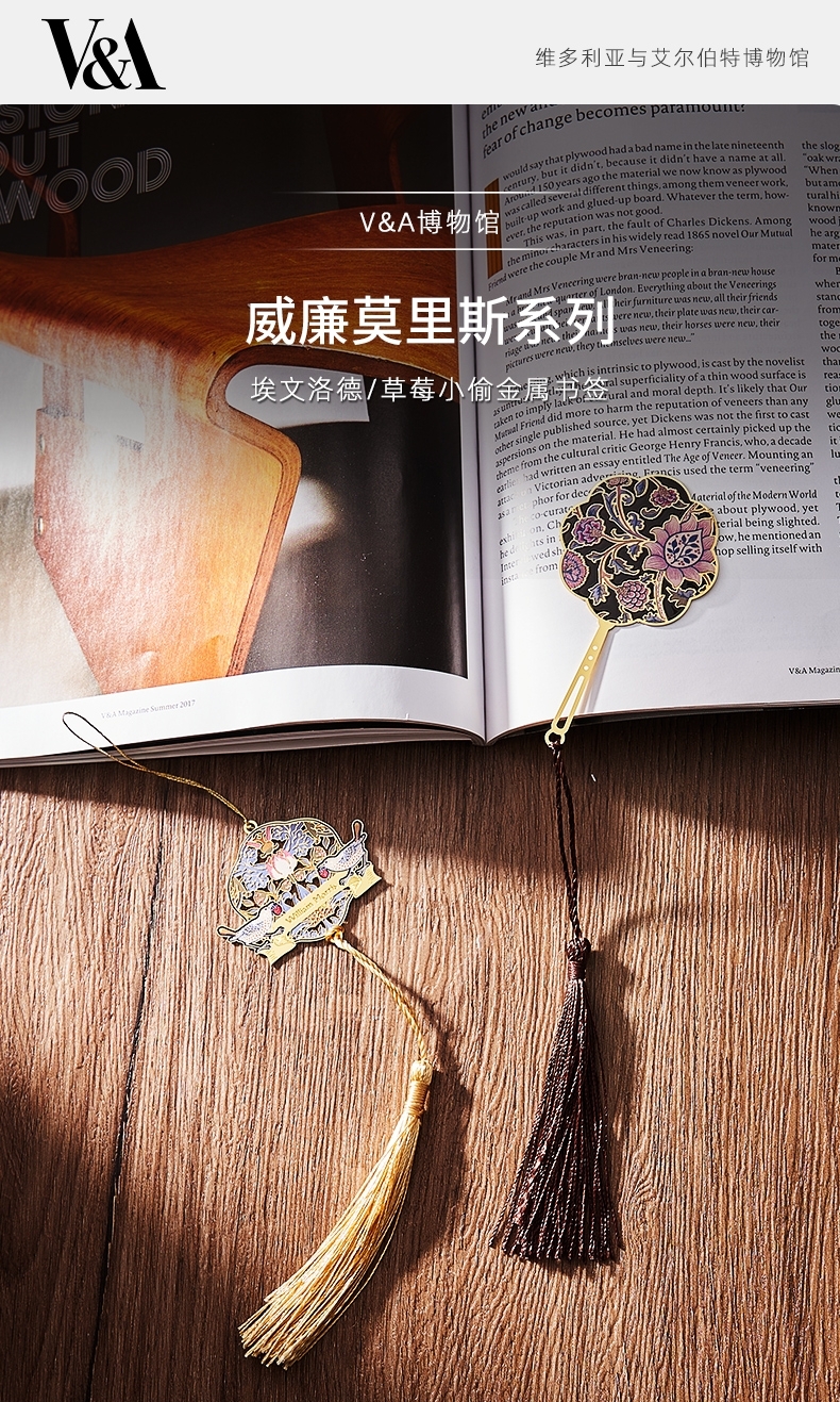 V&A博物馆威廉莫里斯系列 埃文洛德 草莓小偷流苏金属书签 创意文具文创礼物