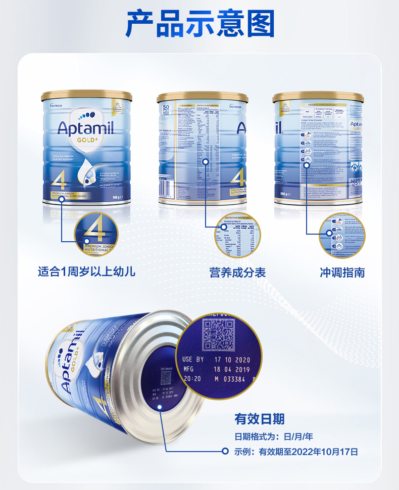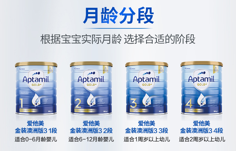 【保税】澳洲 金装爱他美Aptamil 1段2段3段4段婴儿配方奶粉900g罐装