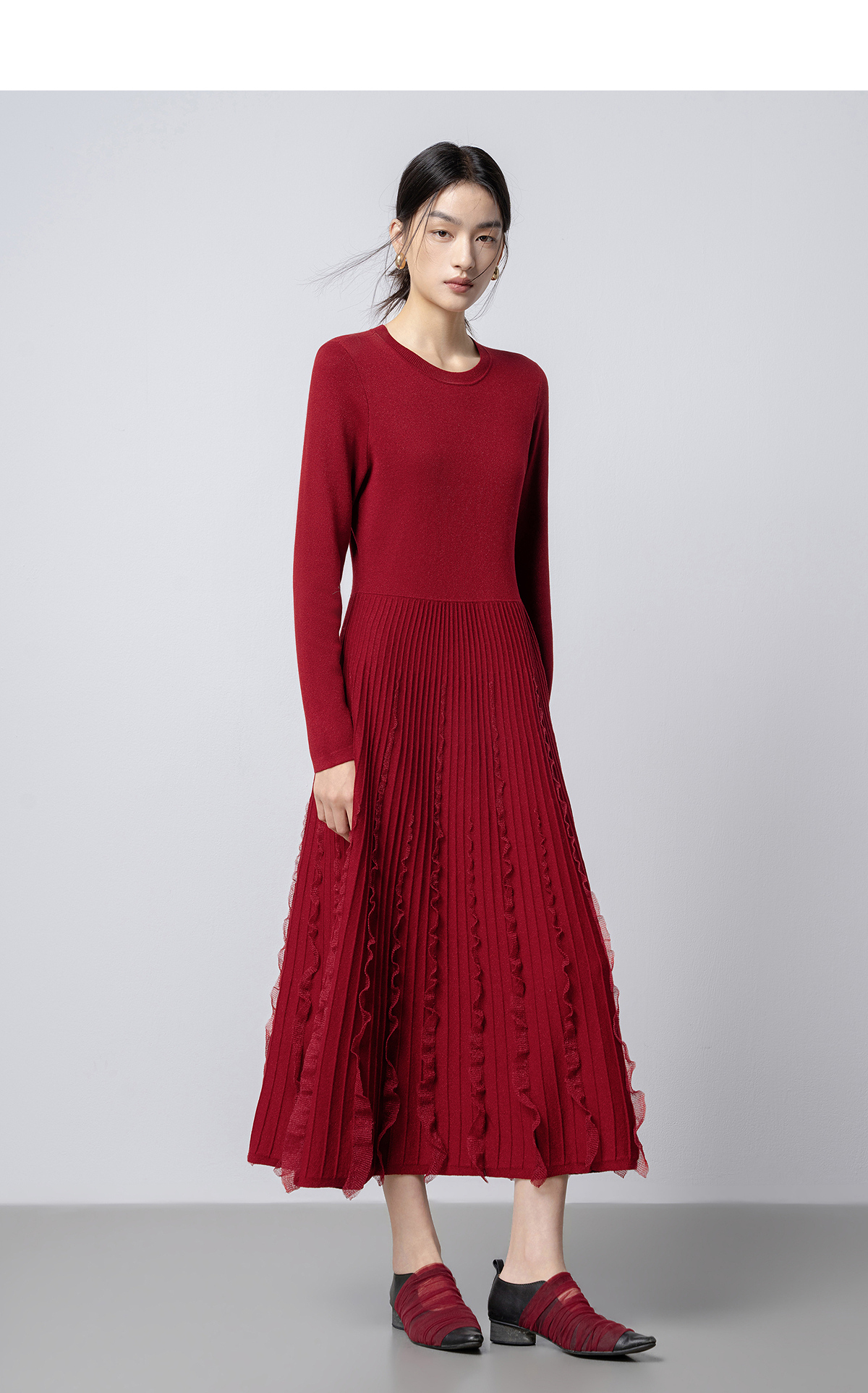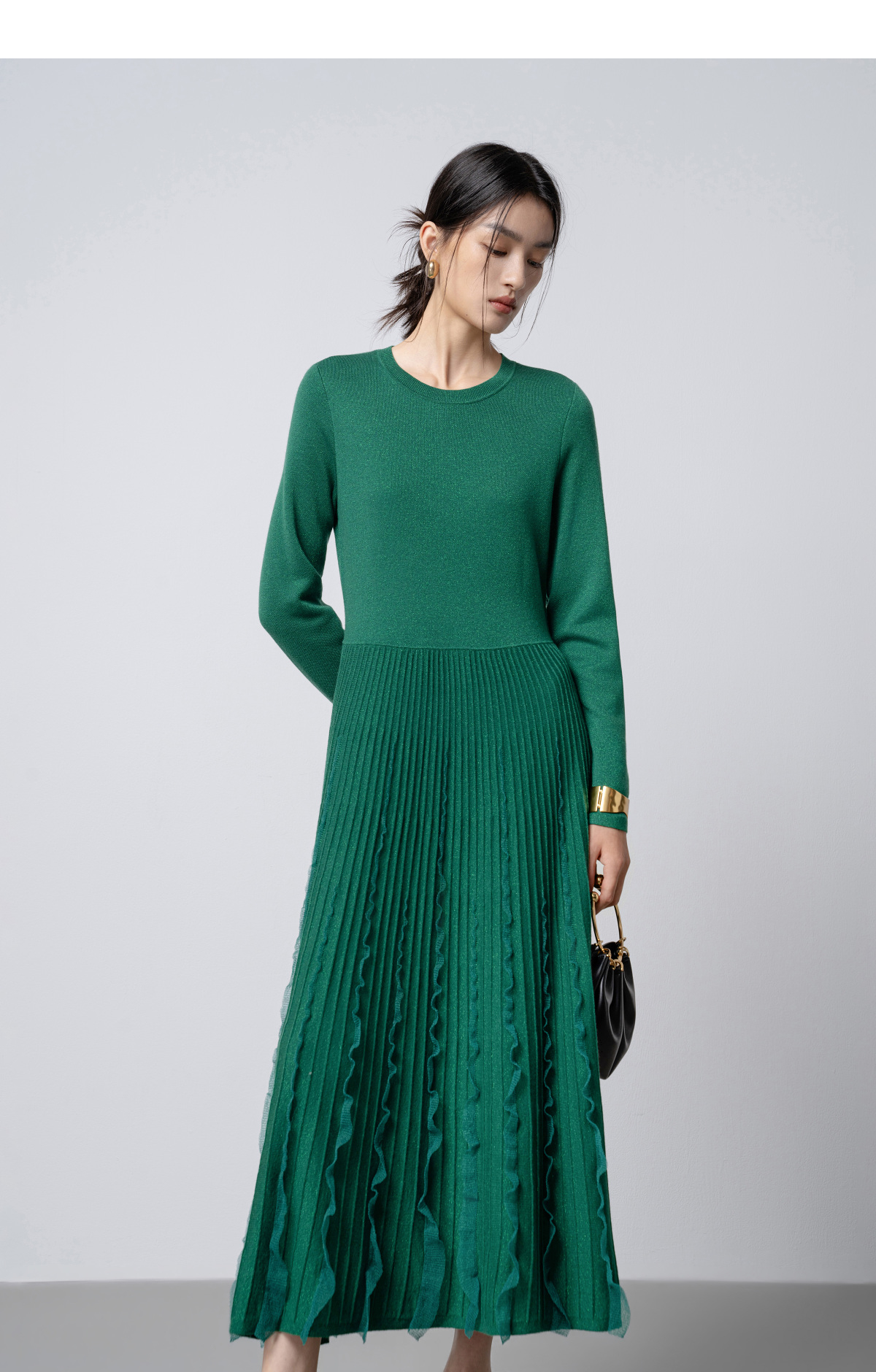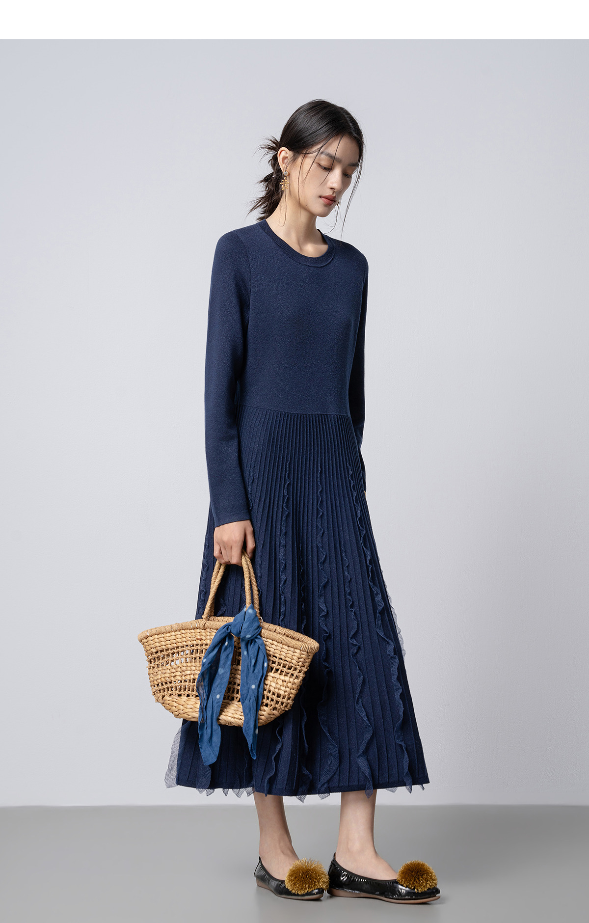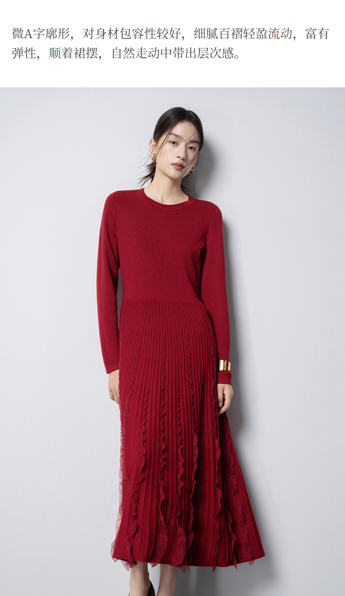 【林栖设计小店】花意妙影|彩葱花边优雅百搭2026早春新款多色毛织连衣裙T1961362
