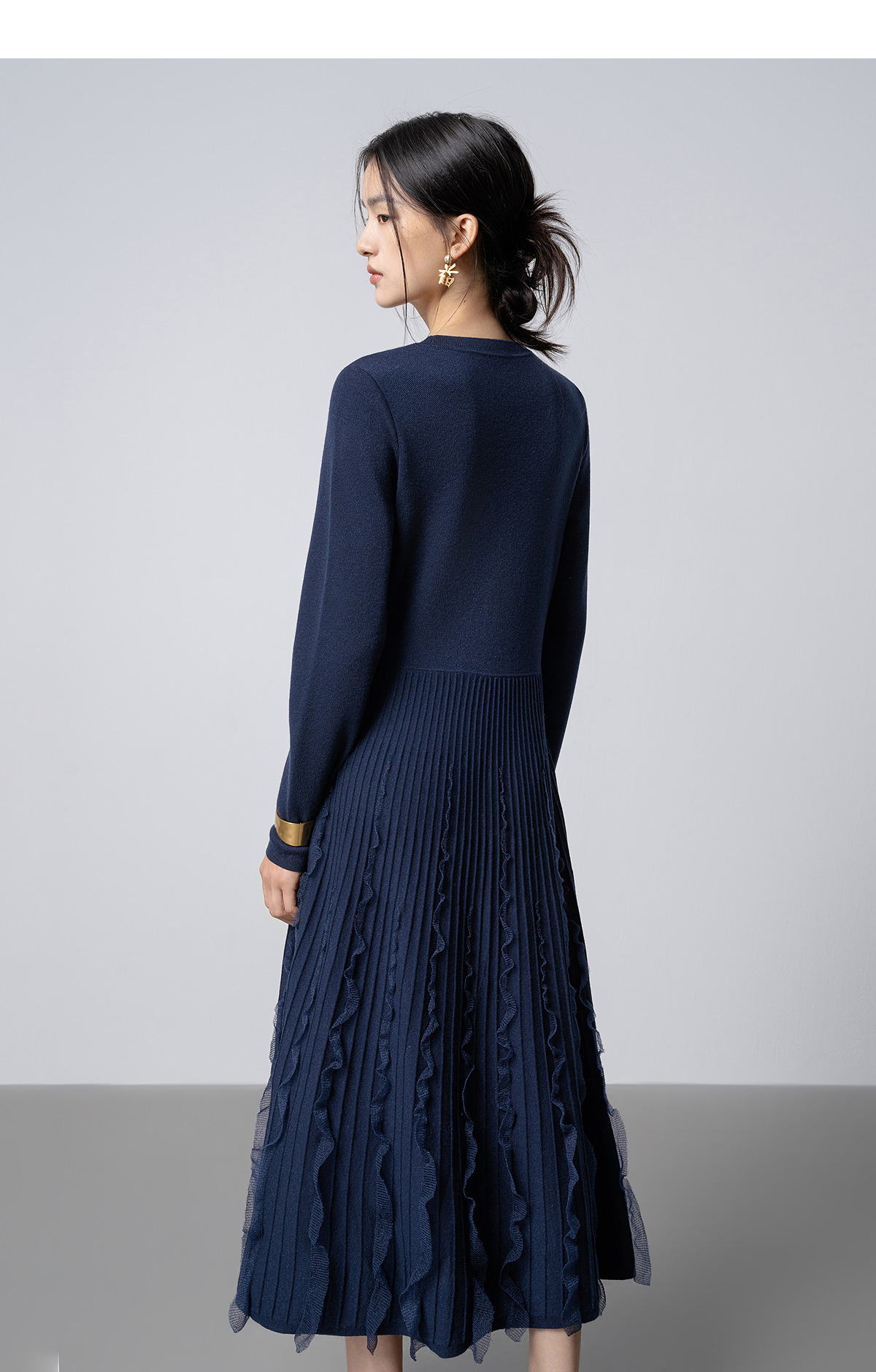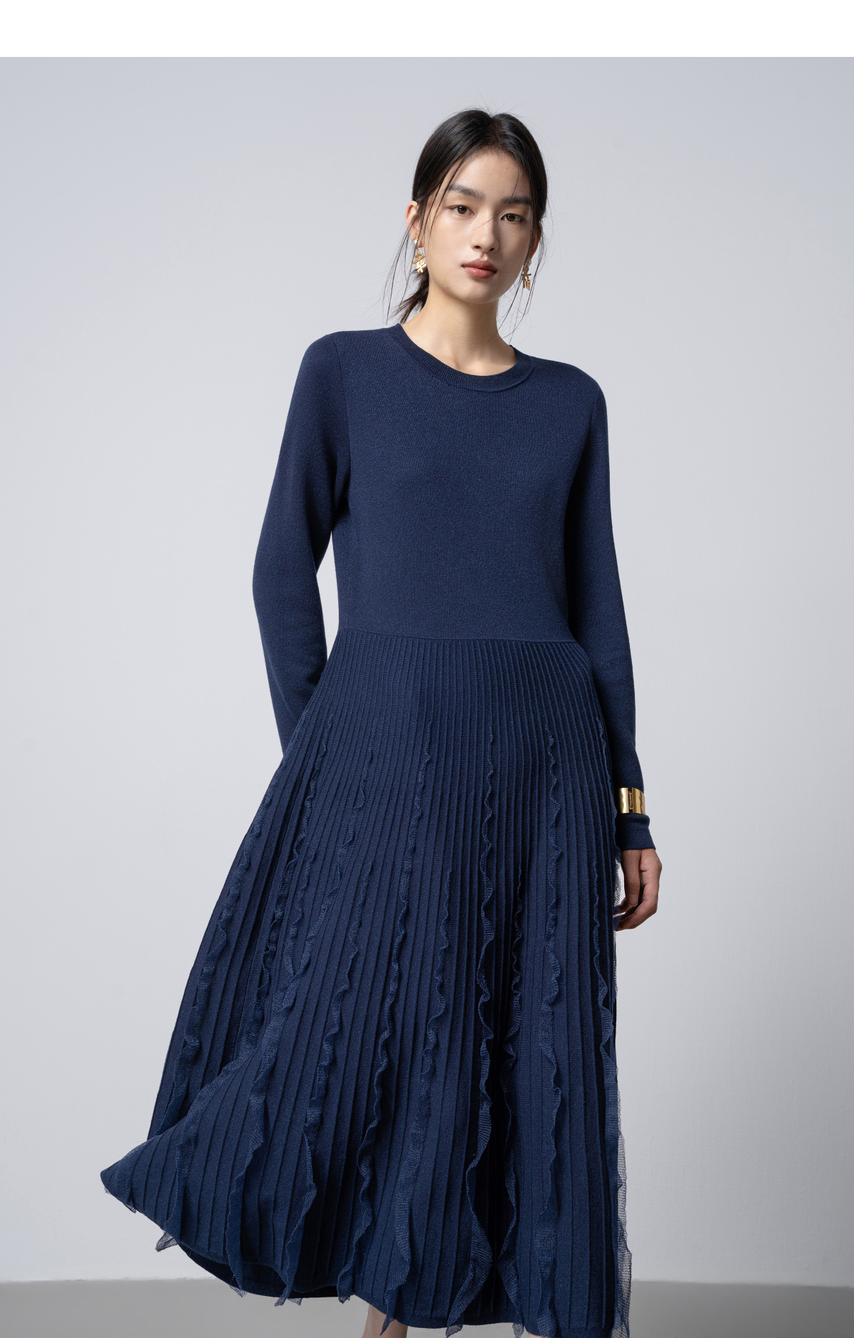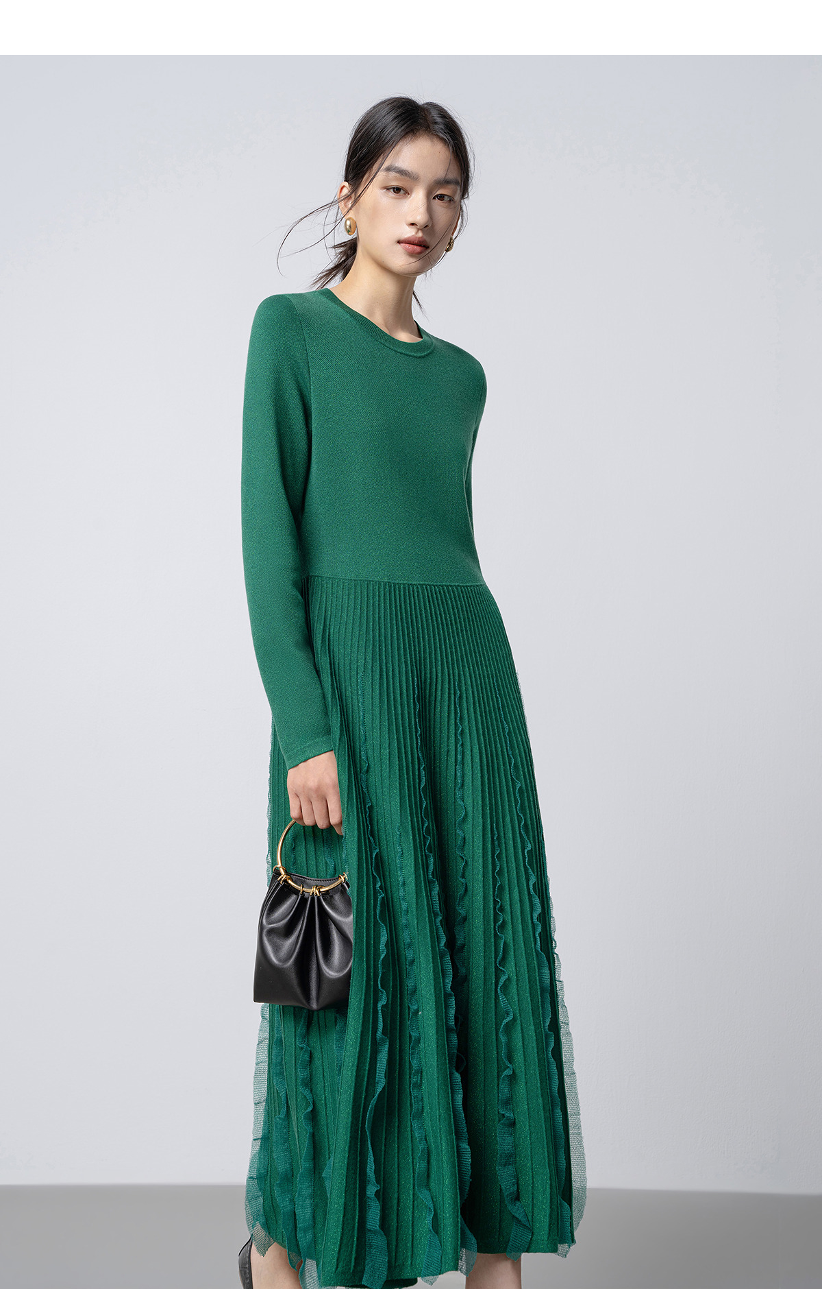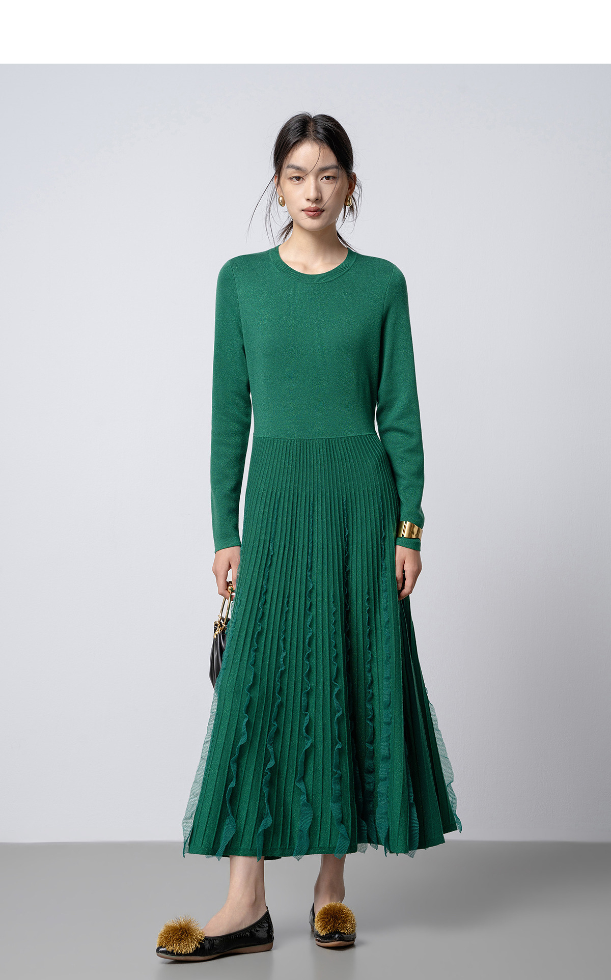 【林栖设计小店】花意妙影|彩葱花边优雅百搭2026早春新款多色毛织连衣裙T1961362