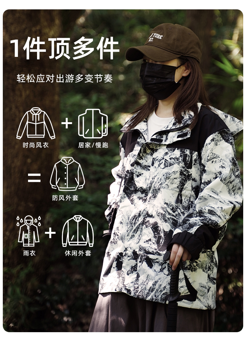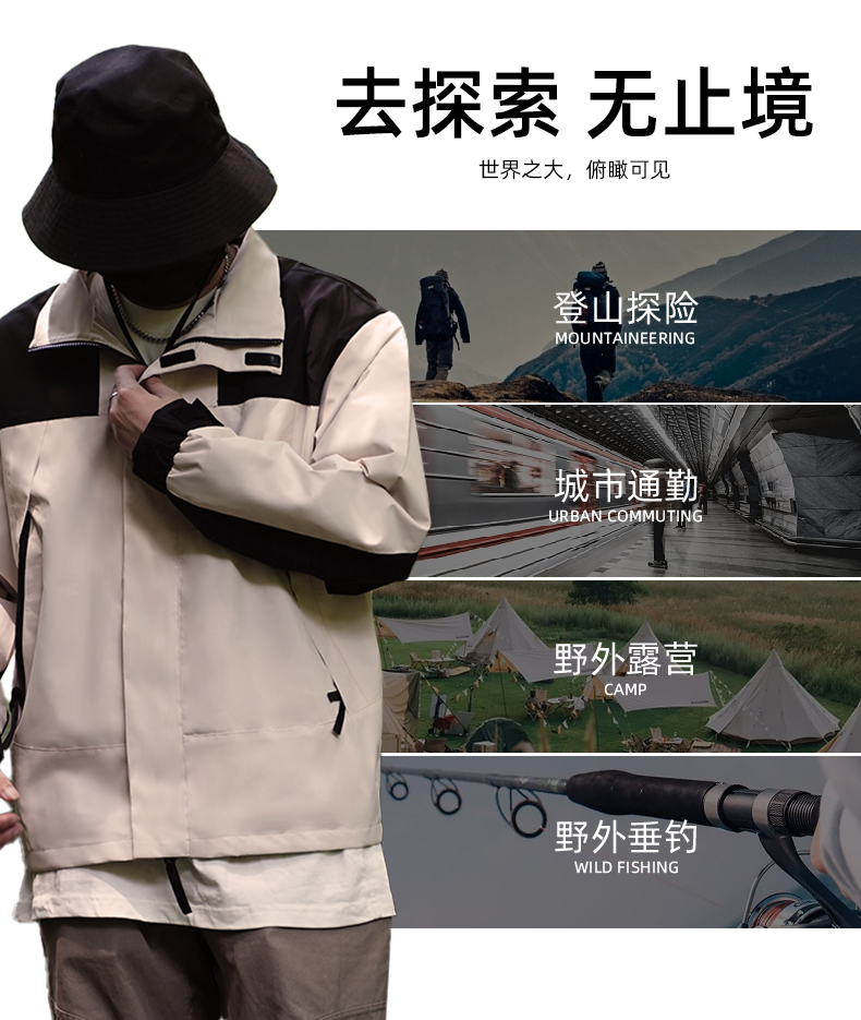 【防水防污,无惧风雨】【两件再减10元】秋季新款拼色冲锋衣情侣款春秋薄款旅游运动外套防风防水户外服