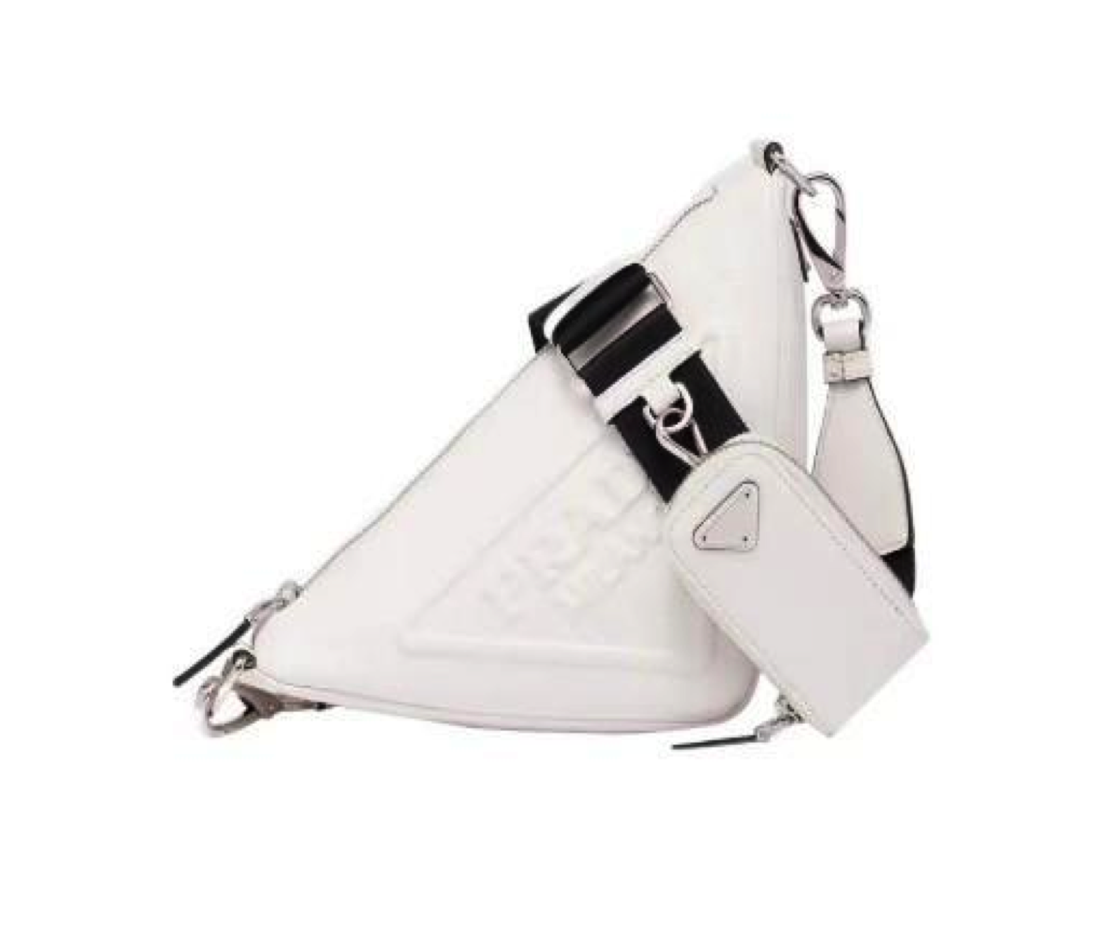 PRADA普拉达 Triangle 时尚潮流拉链开合可拆卸皮革 三角包斜挎包单肩包 男款 白色