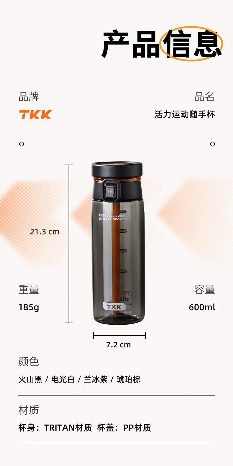 TKK活力运动随手杯600ml琥珀棕