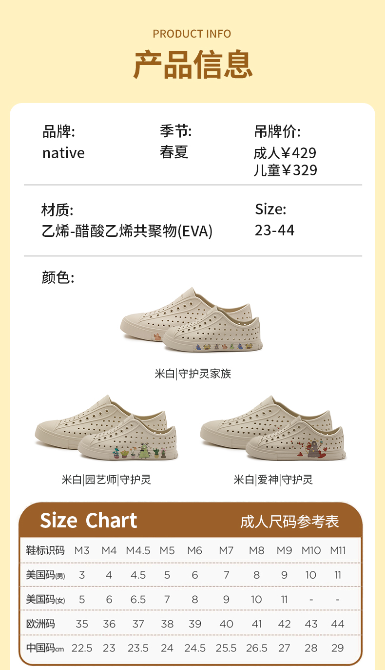 [ss2025]native 春夏新款亲子洞洞鞋守护灵联名款沙滩溯溪凉鞋