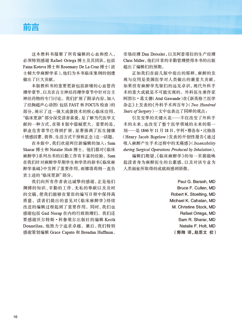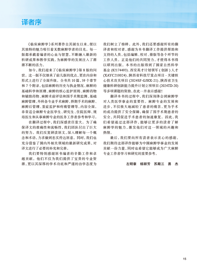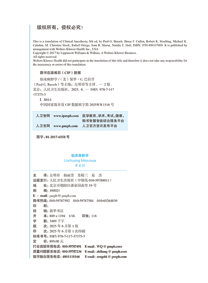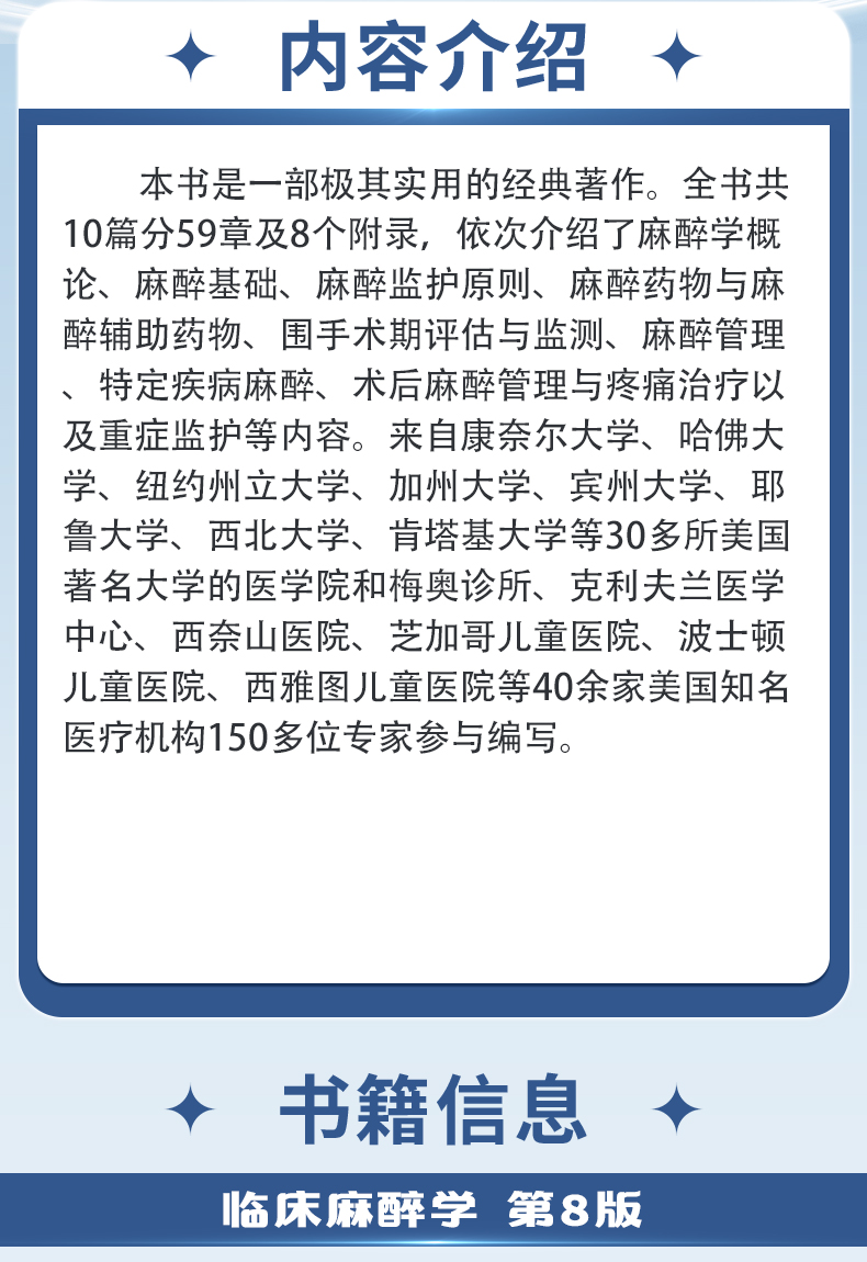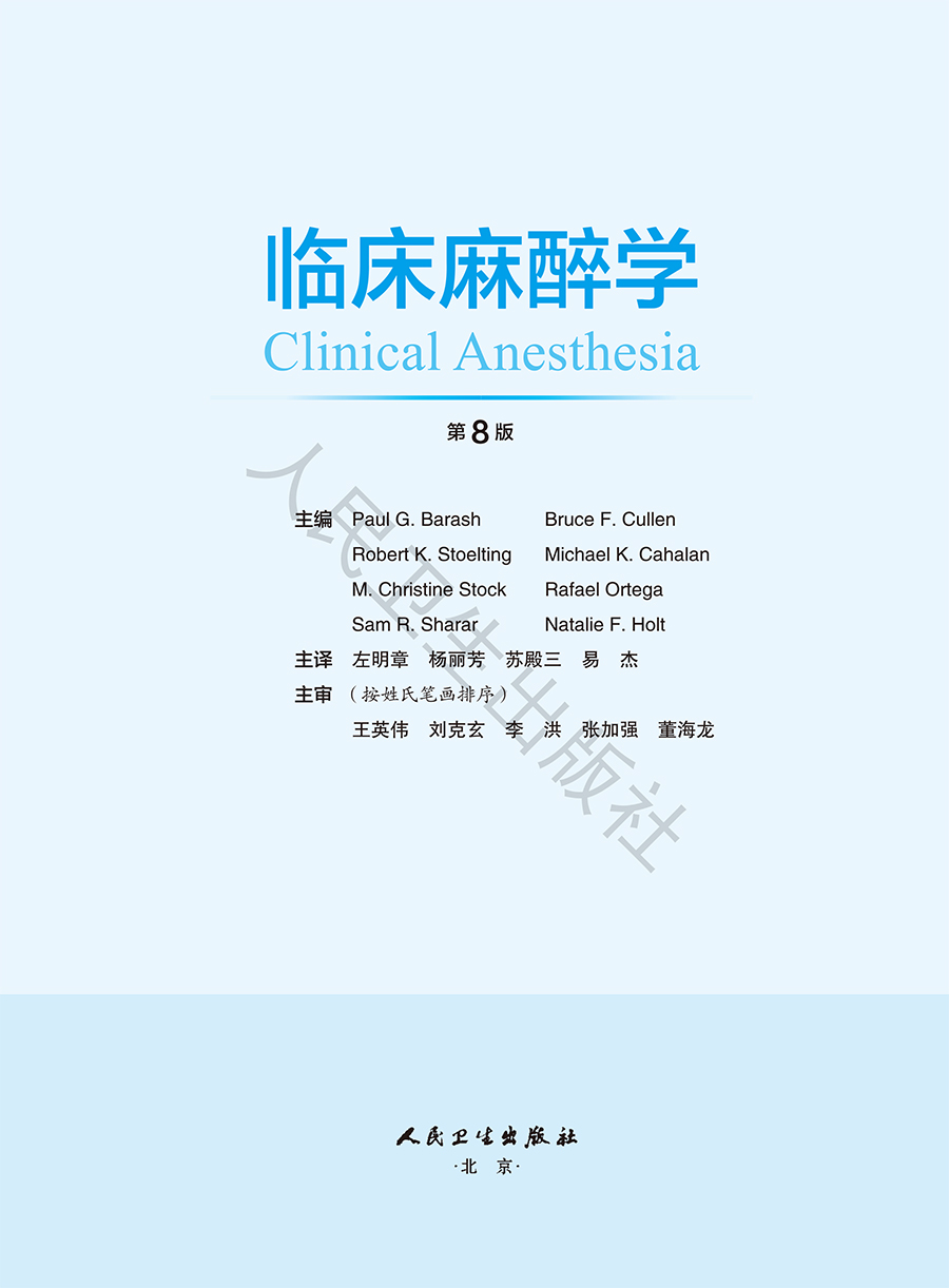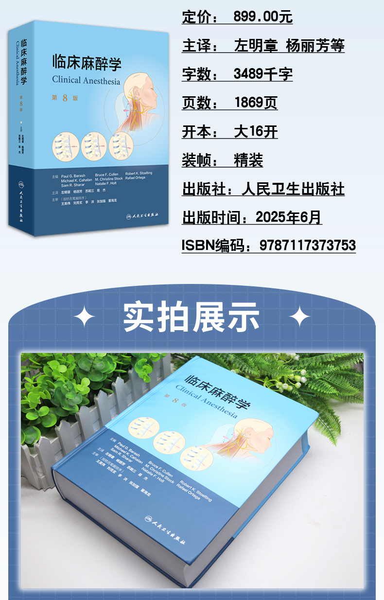 临床麻醉学 第8八版 左明章 杨丽芳 苏殿三 易杰 主译 依次介绍了麻醉学概论麻醉监护原则等以及重症监护等内容 人民卫生出版社