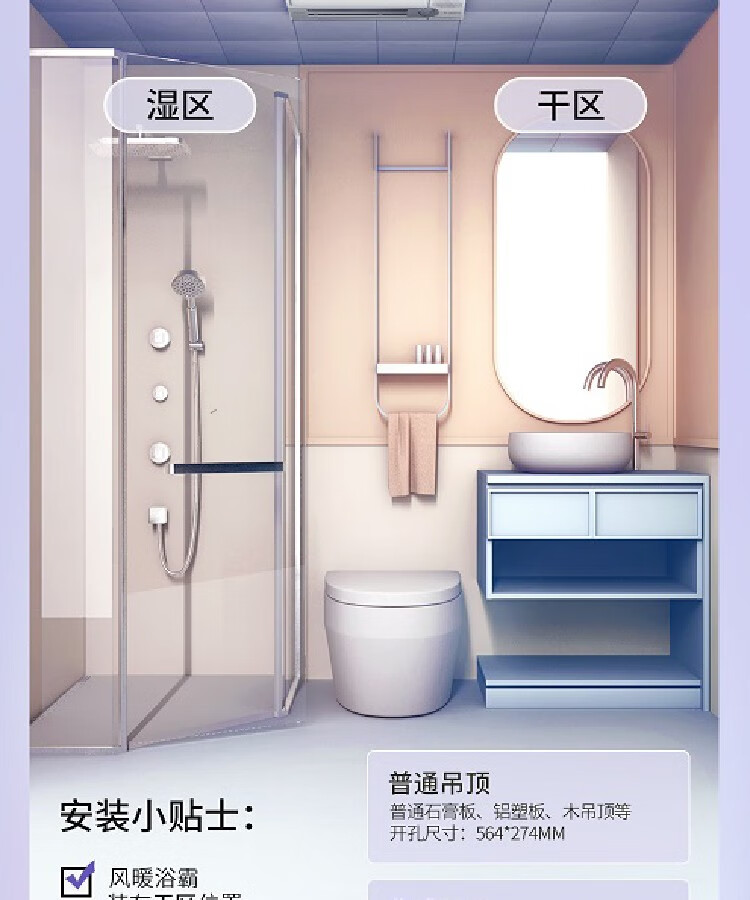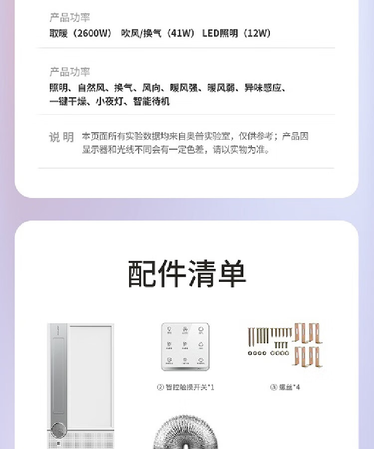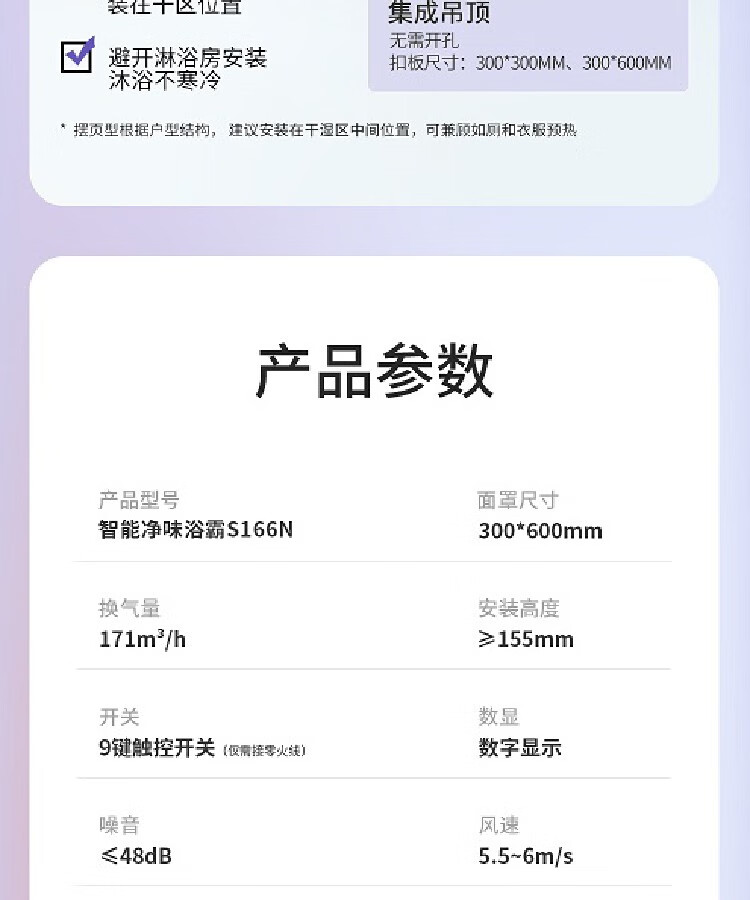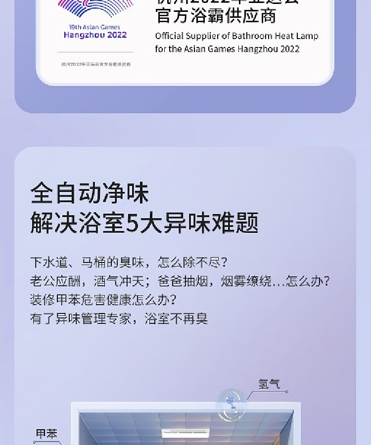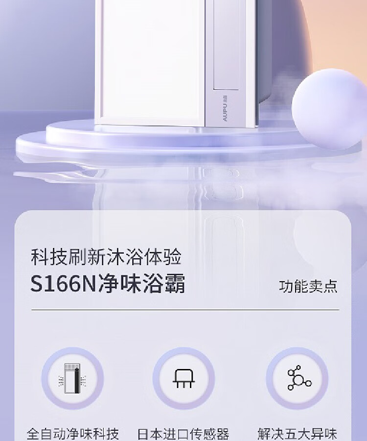 奥普(AUPU)浴霸宽摆出风疾速制热小夜灯异味感应除臭S166N 【包基础安装】S166N