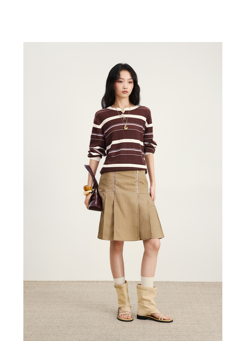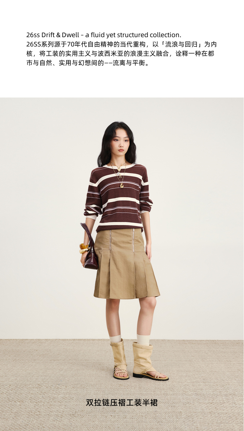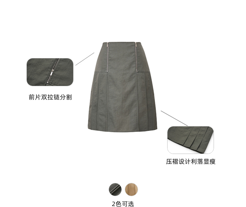 lost in echo2026年春季新款双拉链A字压褶显瘦百搭工装半裙女
