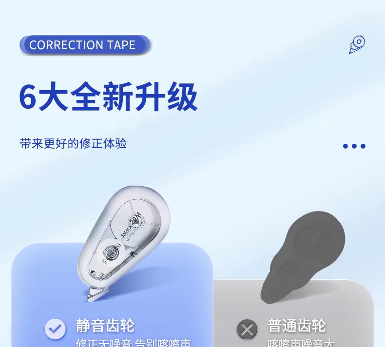 【升级防摔护套❗️静音齿轮修正无声】晨光79701大容量静音修正带学生用涂改带高颜值简约改正带大容量。jc