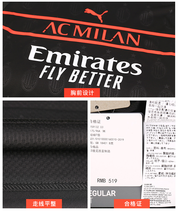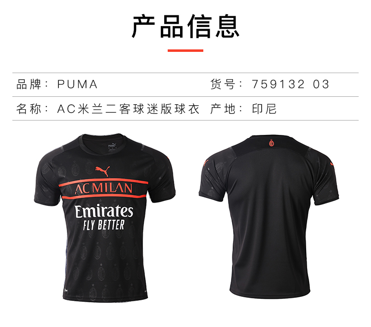 PUMA/彪马 21-22赛季AC米兰第二客场球衣短袖男75913203