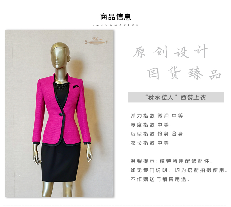 【特惠】YIQU |“秋水佳人”西装上衣(玫红·含5%棉)P