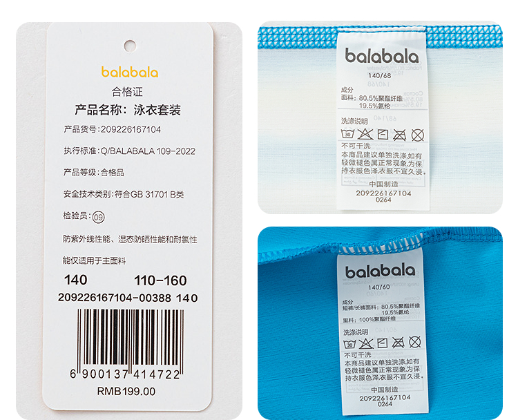 巴拉巴拉儿童泳衣分体泳装男童中大童防晒2026夏季新款游泳装耐氯