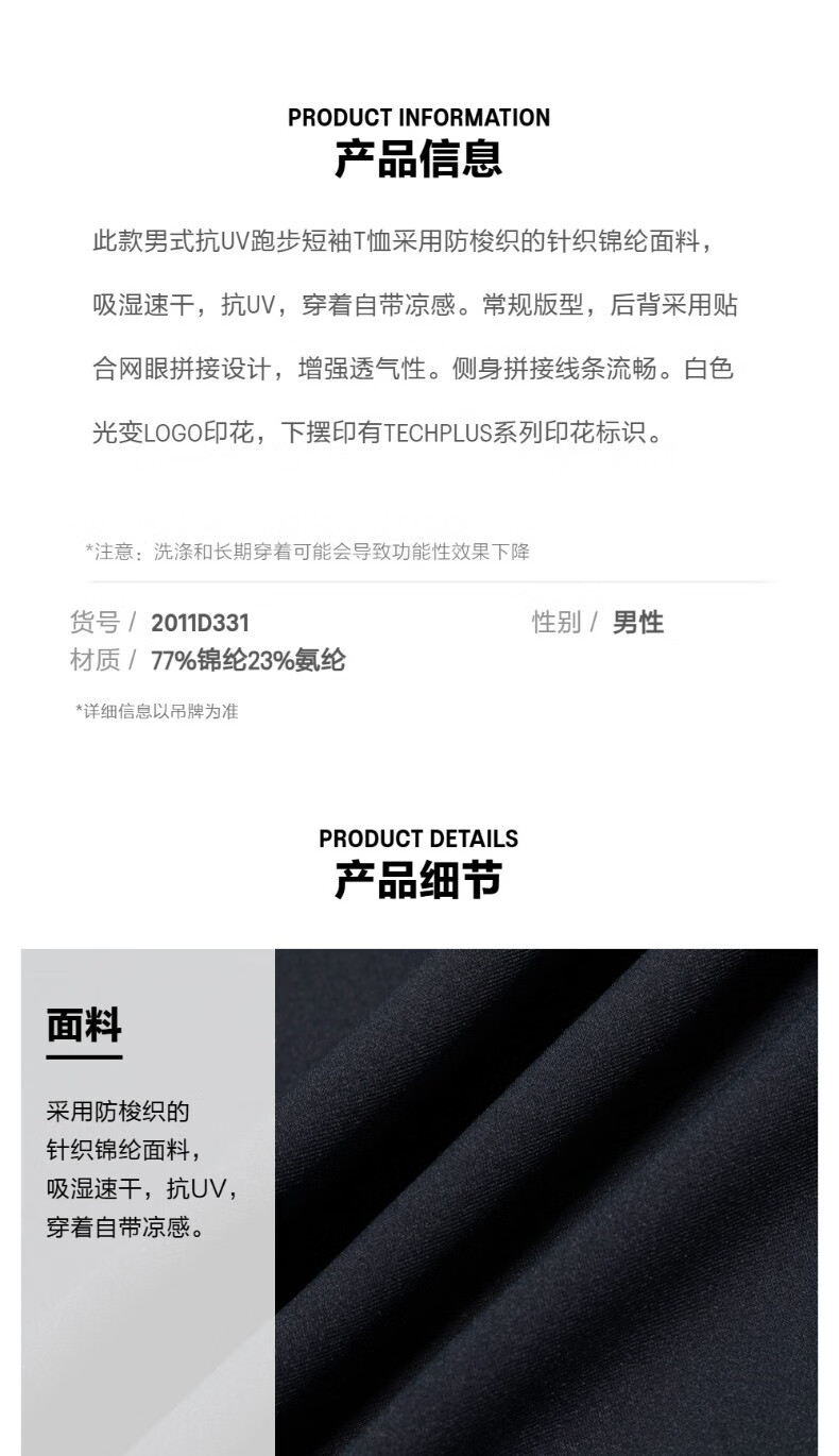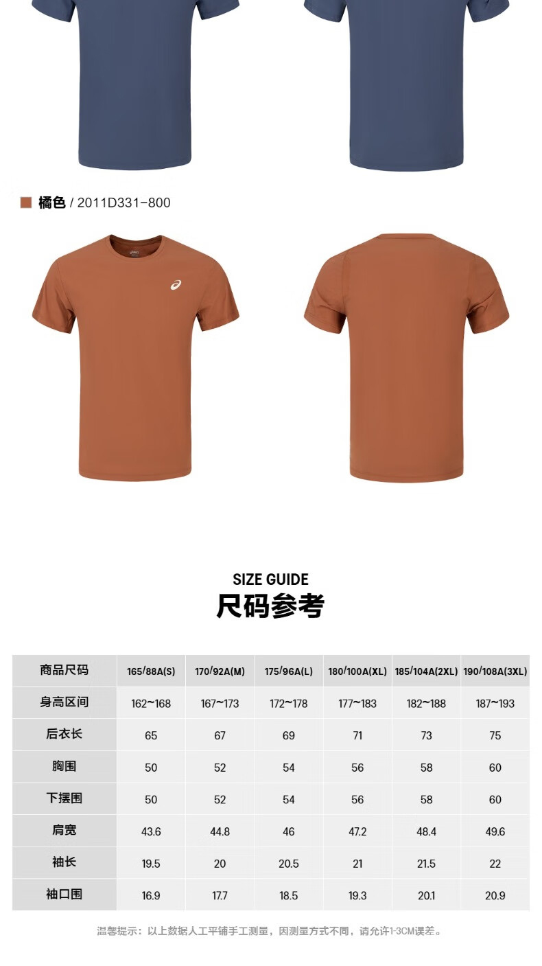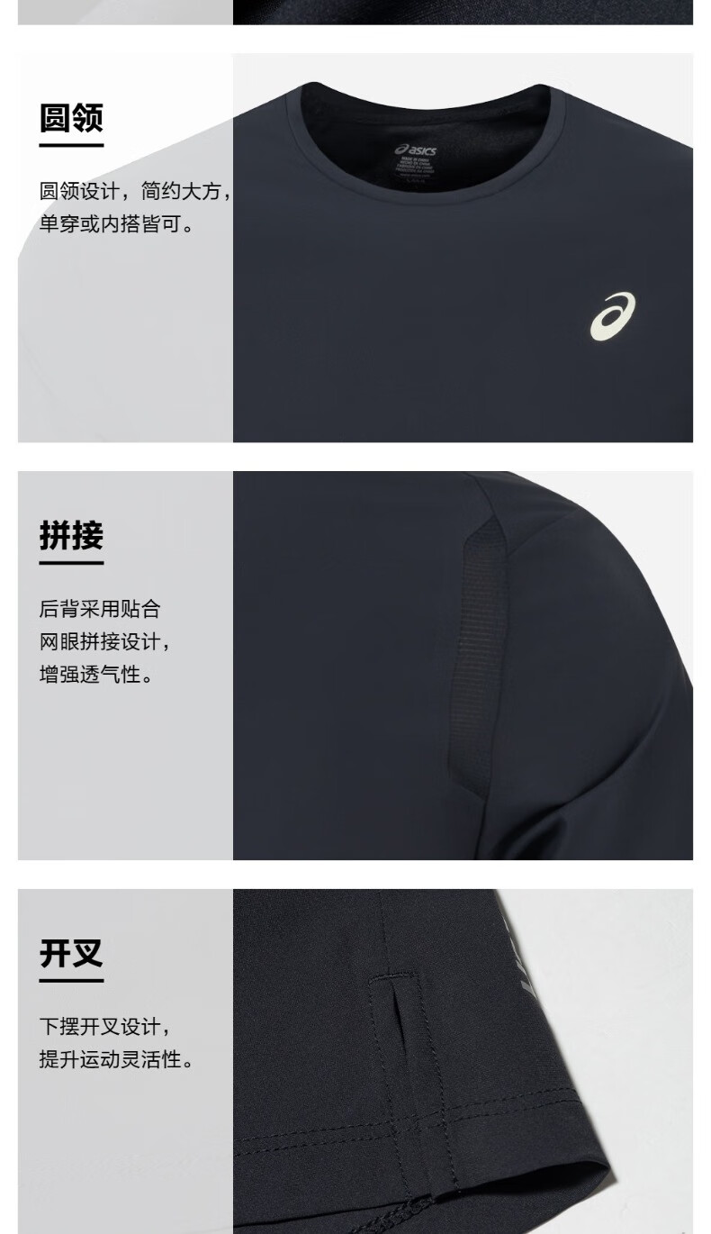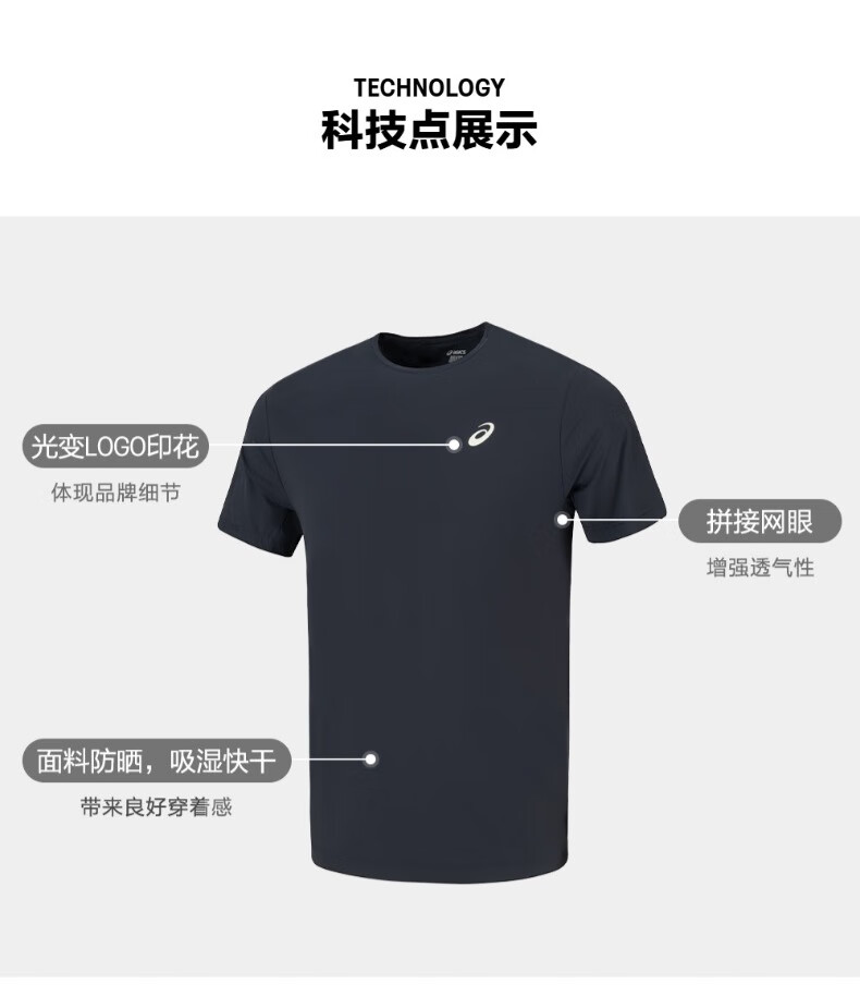 ASICS亚瑟士 男子抗UV舒适透气跑步短袖T恤上衣
