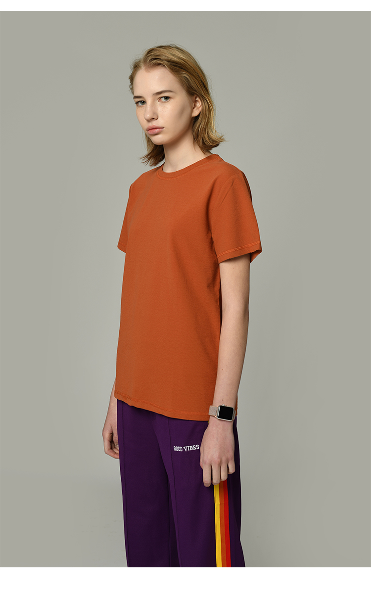 【特价清仓】女士经典款圆领领边下摆破洞肌理T恤