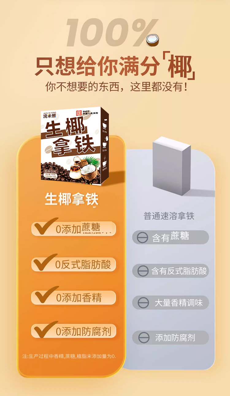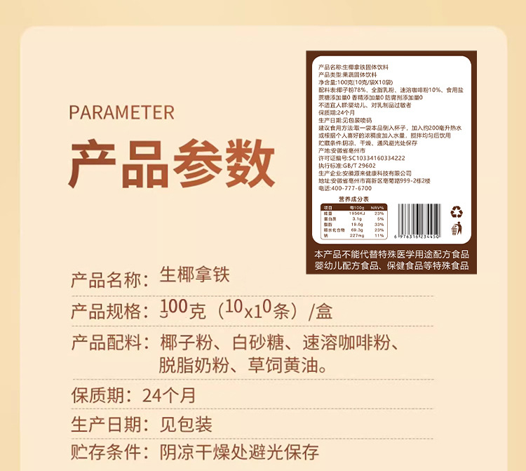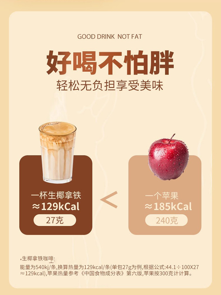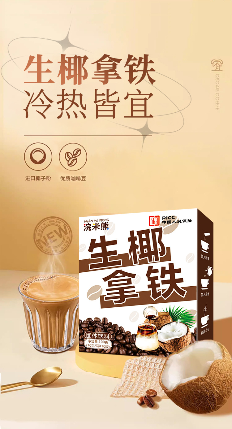 【只想给您满分椰! 生椰拿铁咖啡】甄选优质原料,不单独添加蔗糖,好喝不怕胖,轻松无负担,椰香拿铁,制速溶提神咖啡L