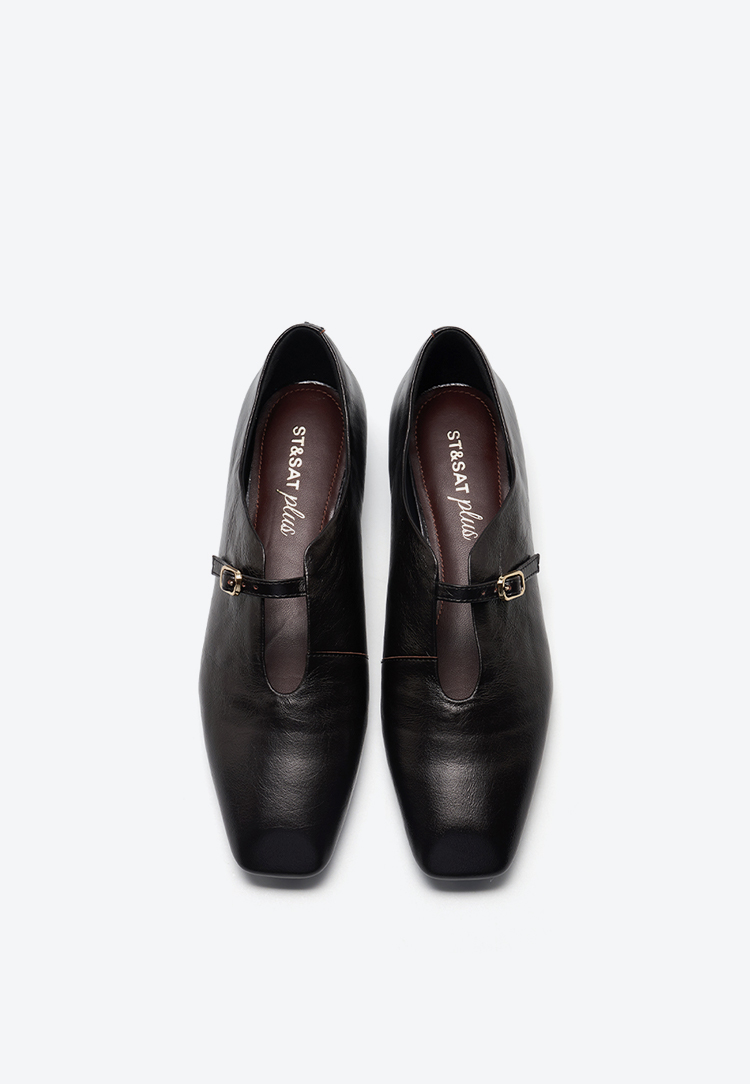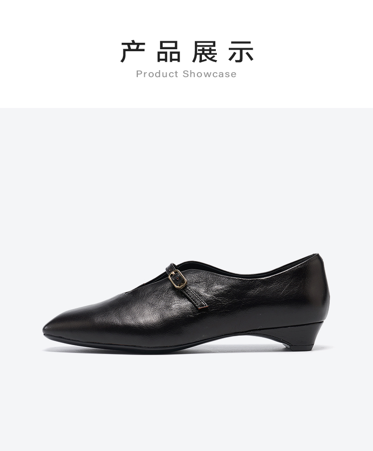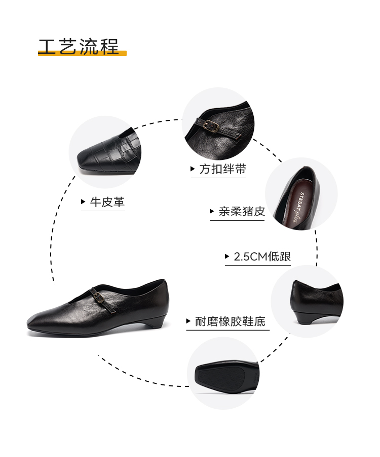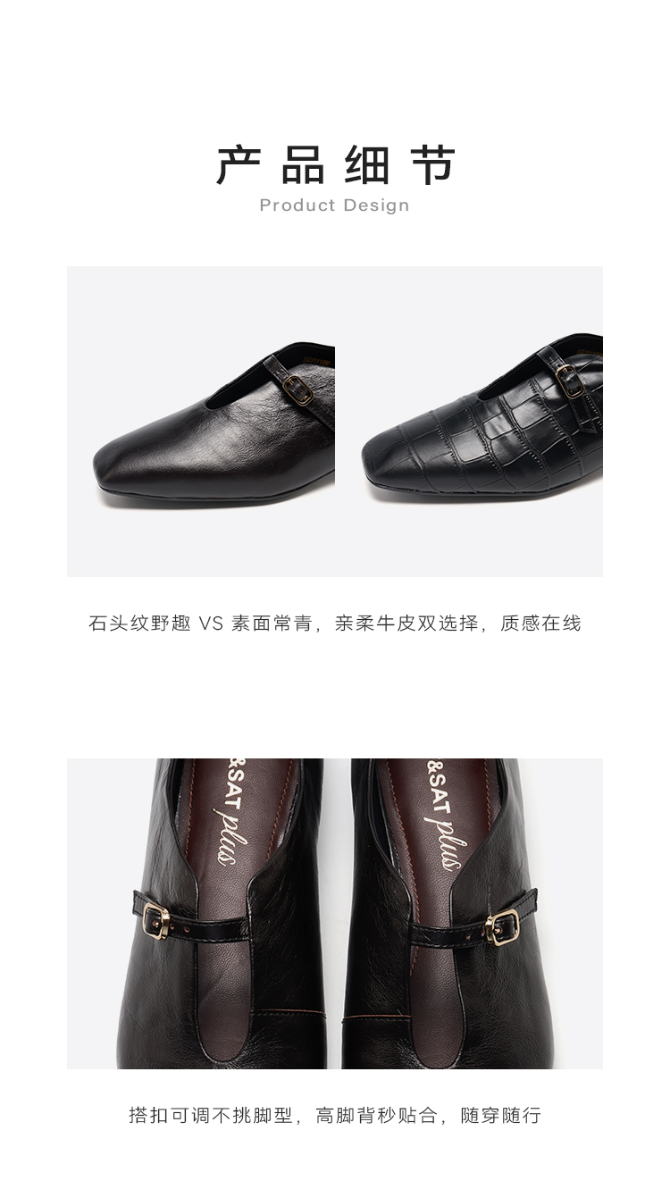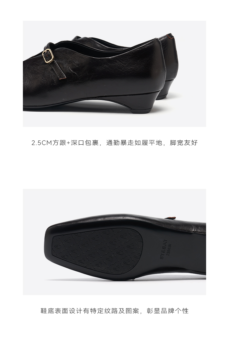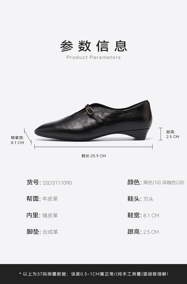 星期六英伦风气质金属扣低跟皮鞋SSD3111090