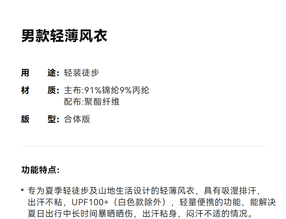 KAILAS凯乐石 男款轻薄风衣 KG2526105【Z】