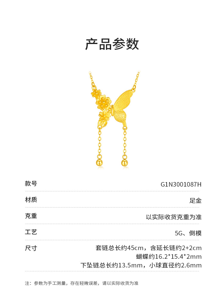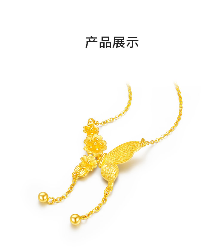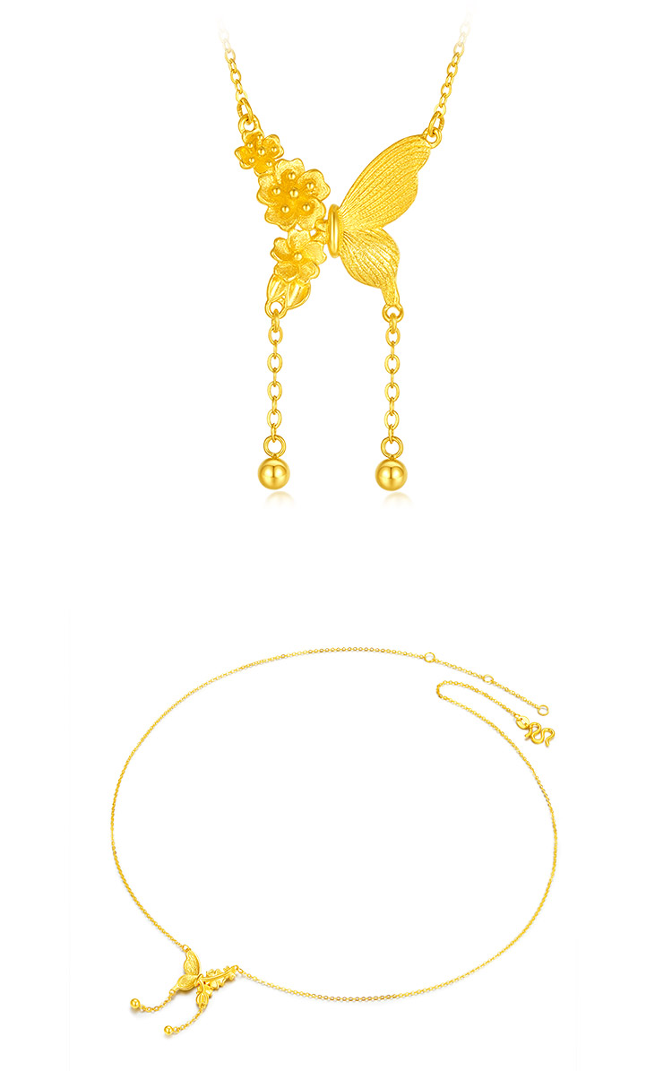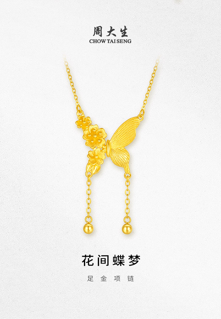周大生黄金项链女足金蝴蝶花朵套链圆珠吊坠生日礼物送女生