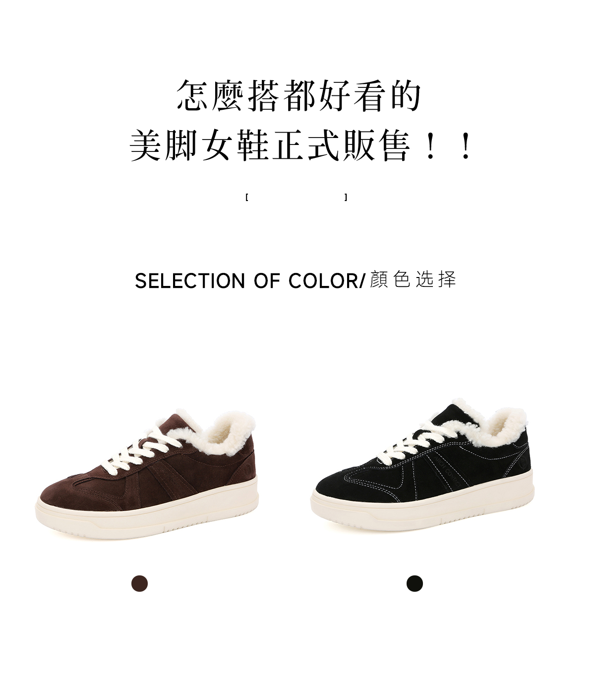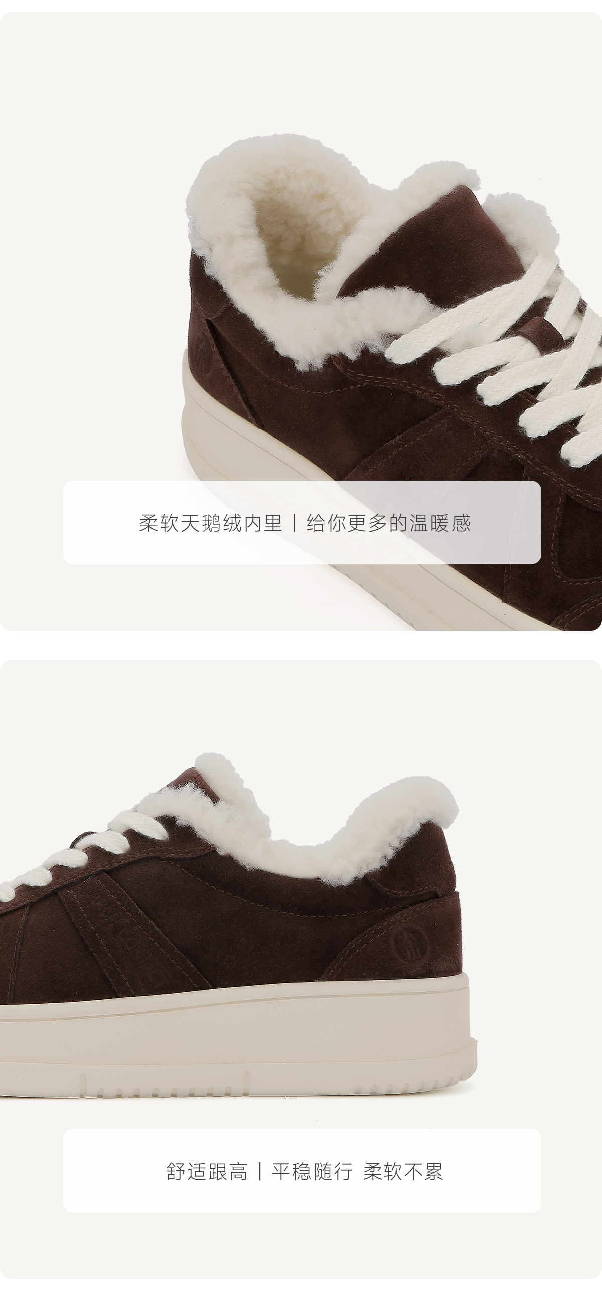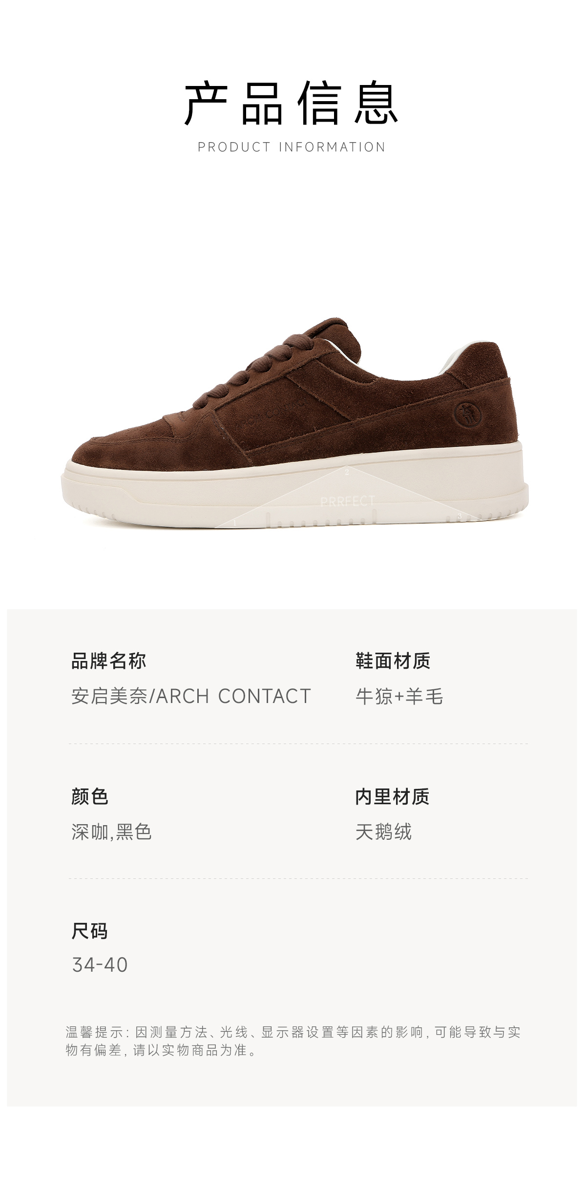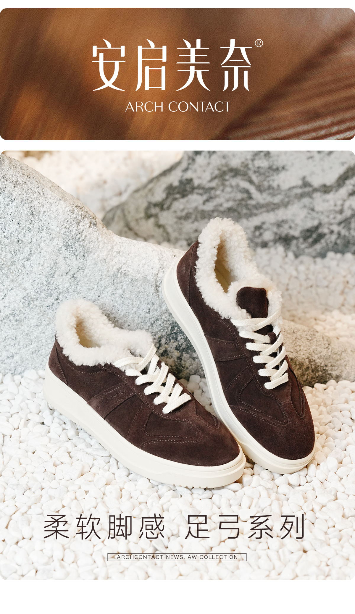 ARCHCONTACT安启美奈真皮反绒加绒保暖休闲毛毛板鞋52984