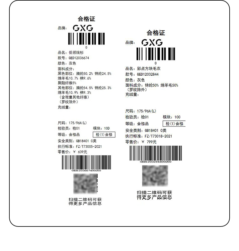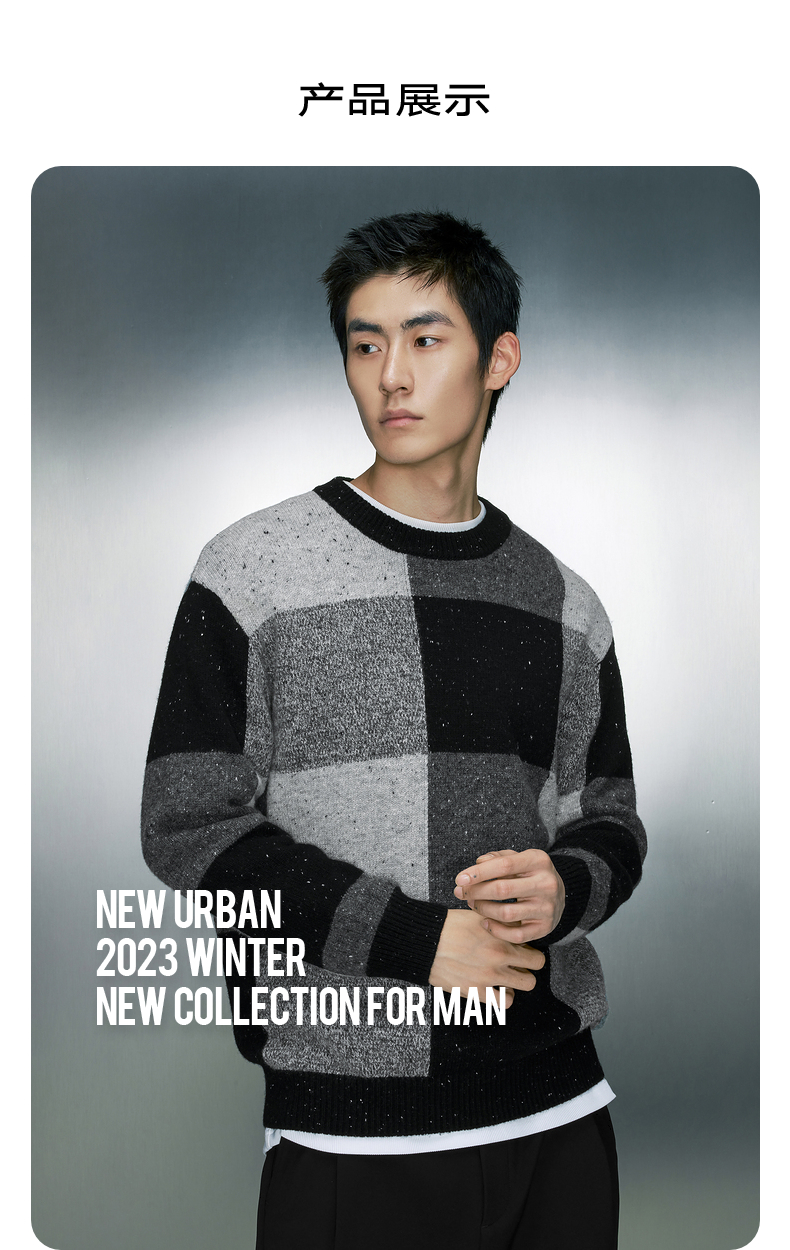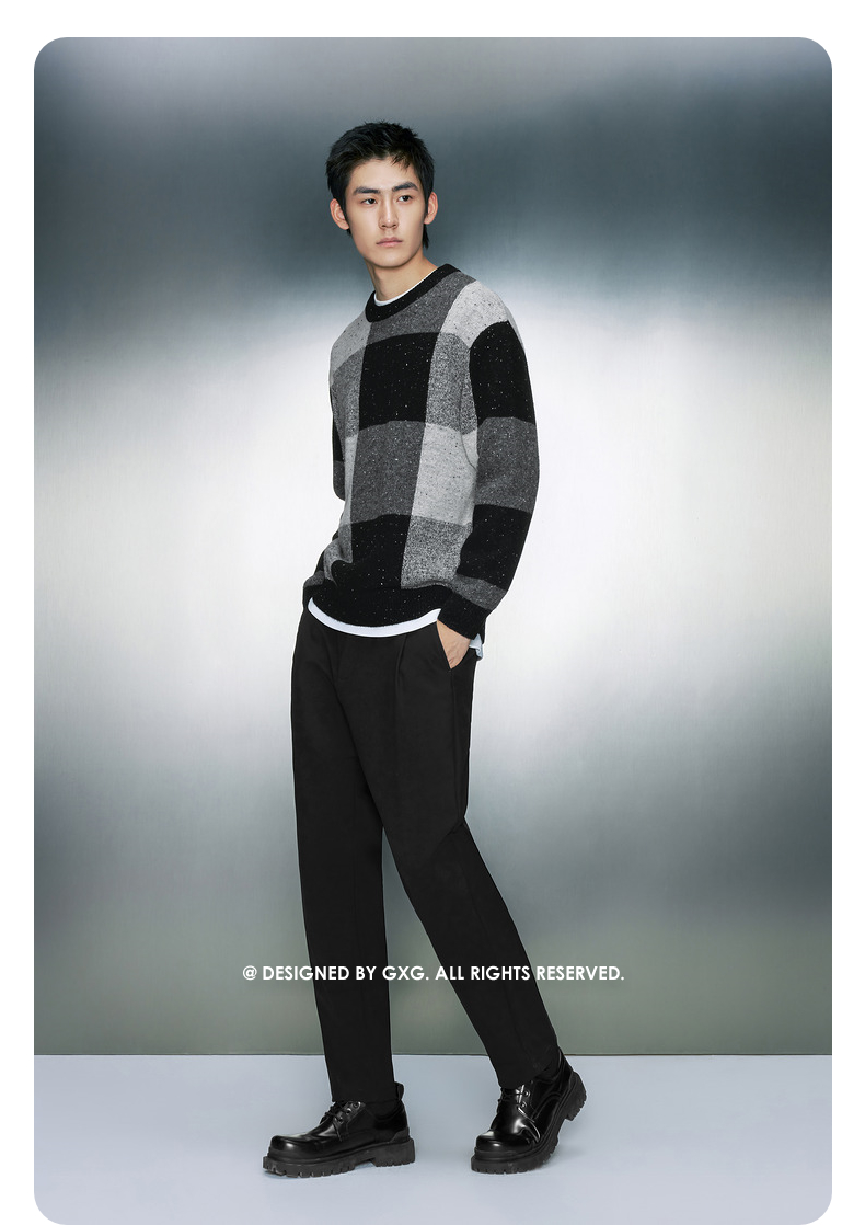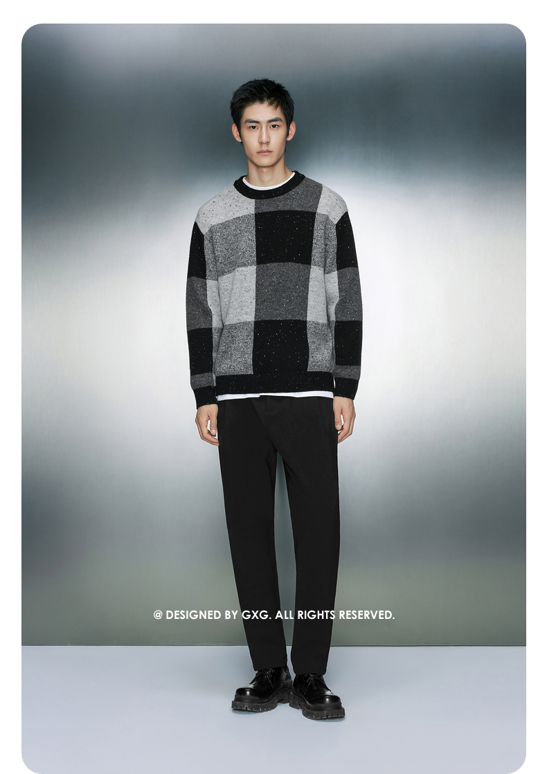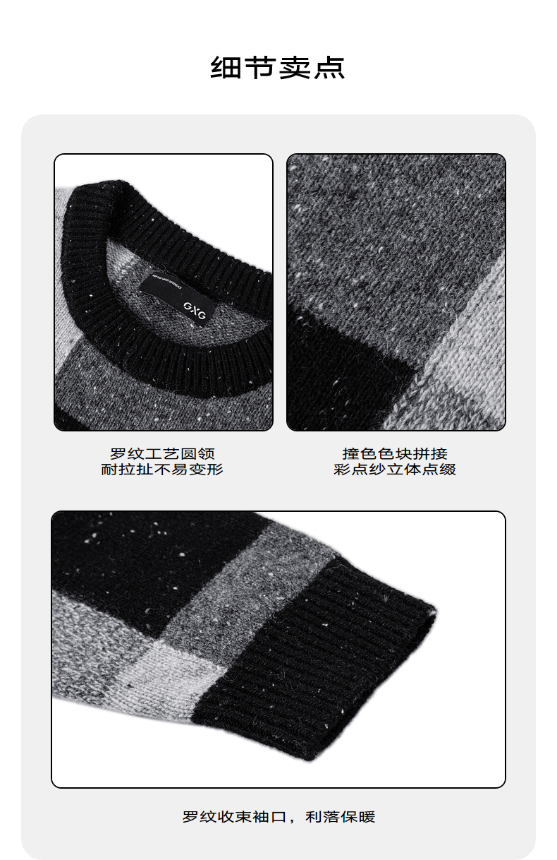 GXG男装 灰色撞色简约时尚圆领针织衫毛衣男士 冬季热卖毛衫