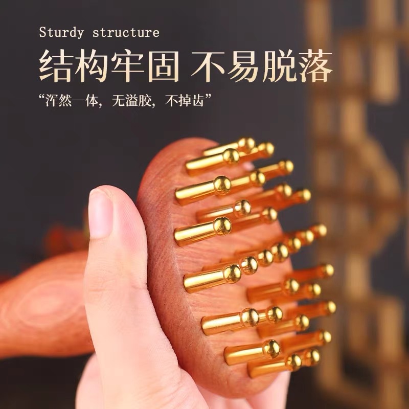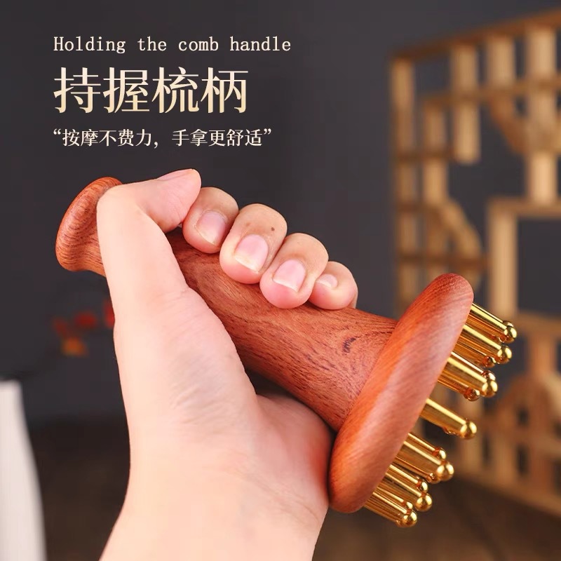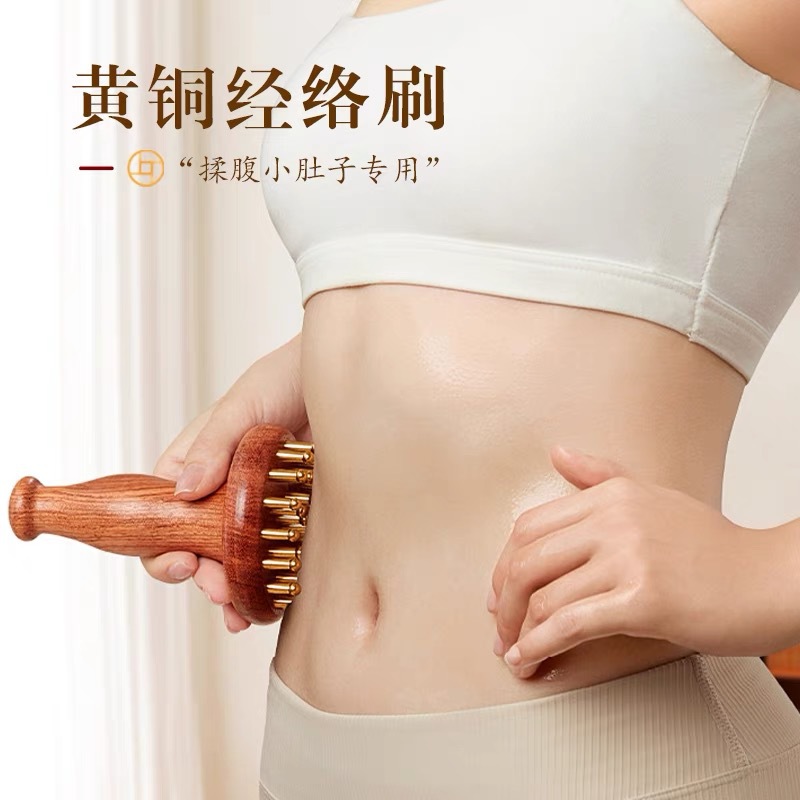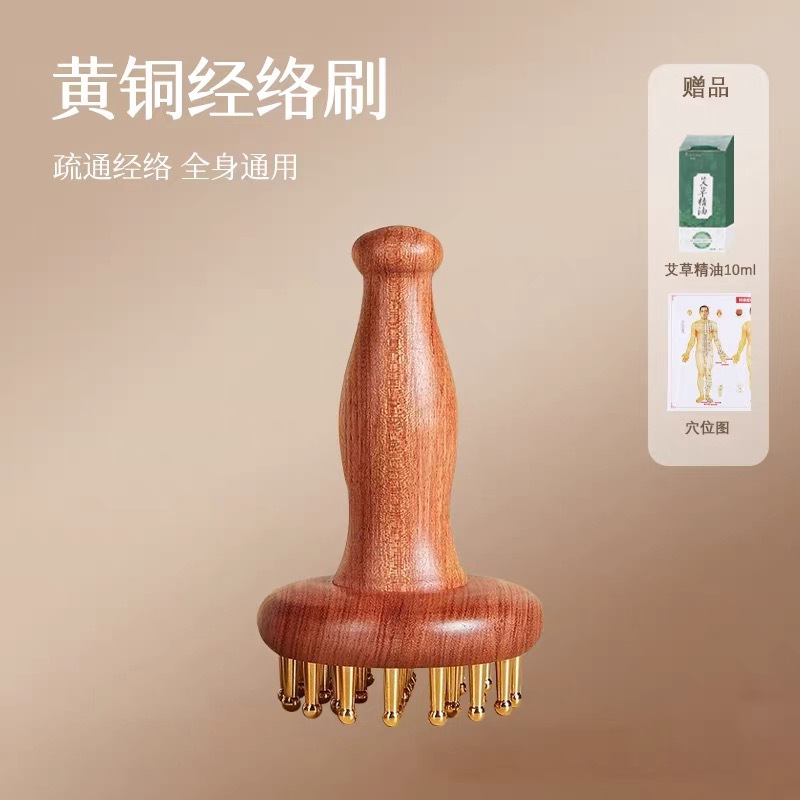 「黄铜梳齿!送精油+图」黄铜经络刷揉肚子全身通用按摩腹部疏通带脉刷头部居家日用刮痧经络按摩梳