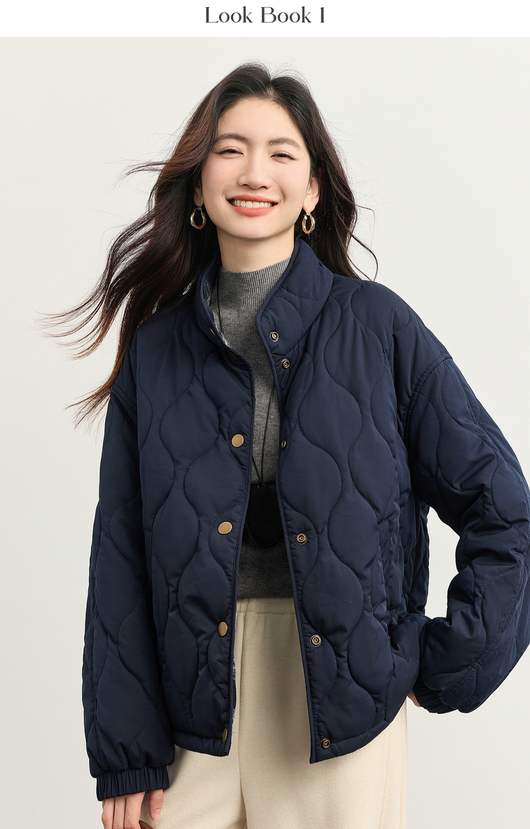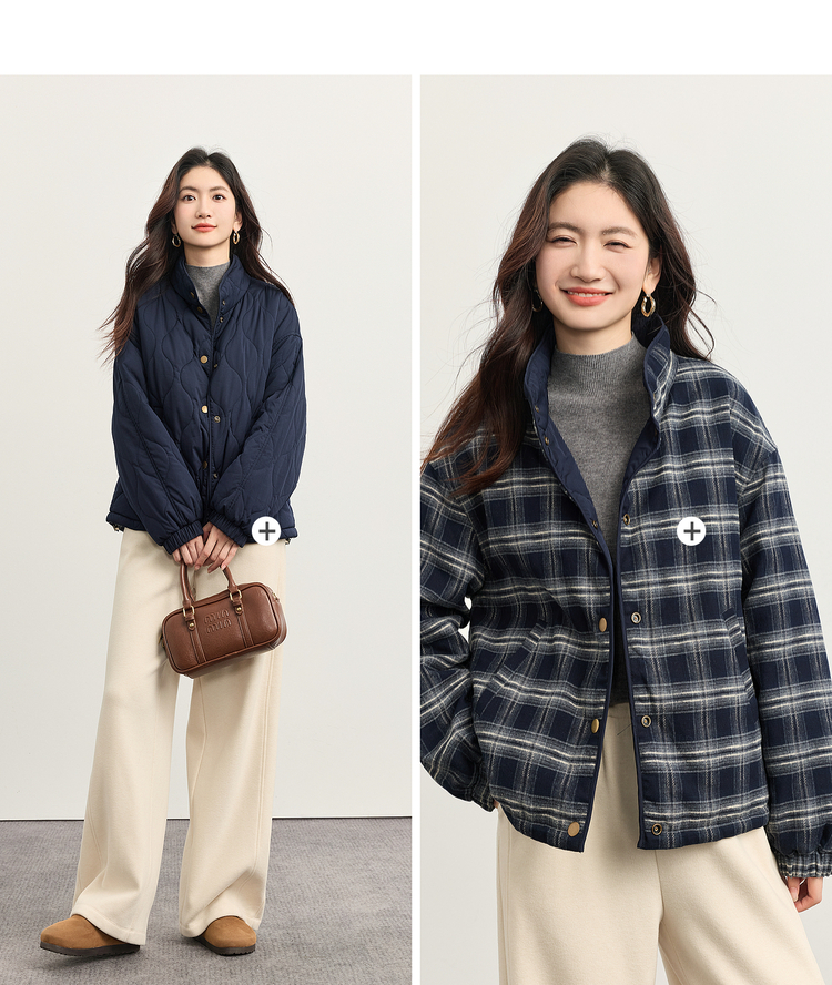 【年货节】熙世界两面穿格纹羽绒棉服女2025冬季新款复古立领保暖棉衣短外套