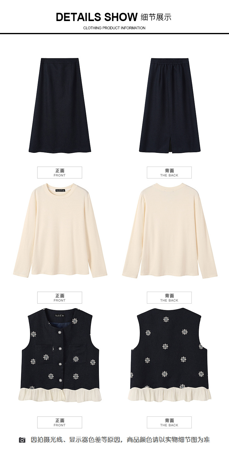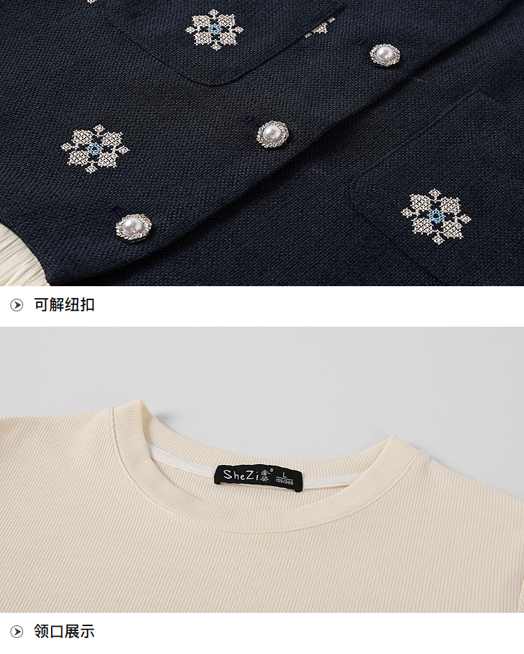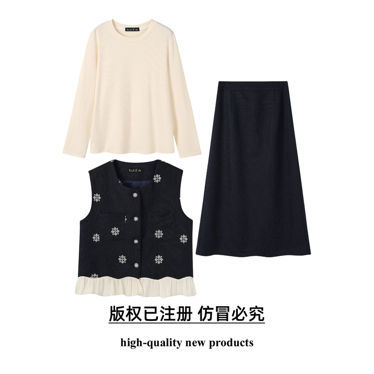 奢姿大码女装2025秋装气质小香风套装雪花刺绣针织马甲内搭半身裙9953994341AB