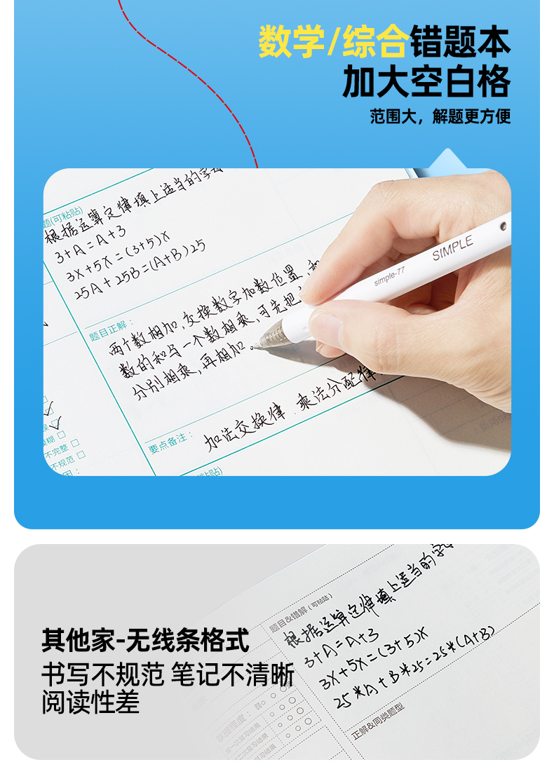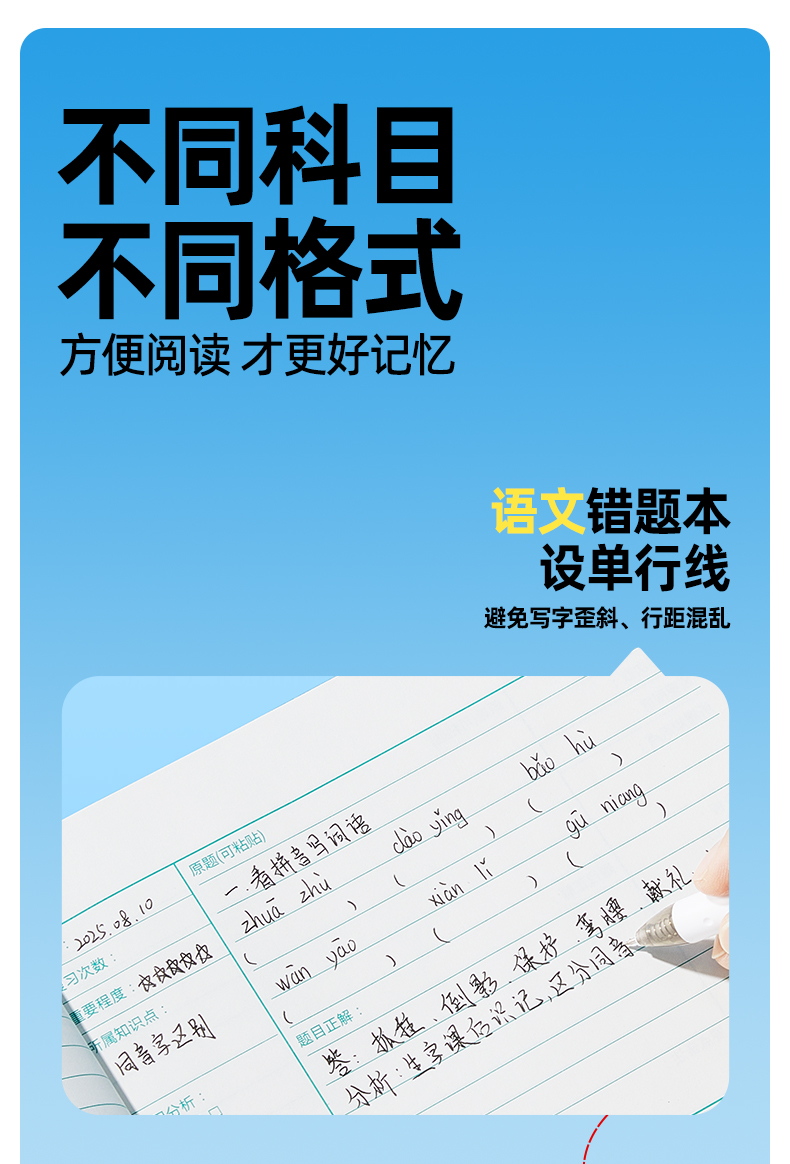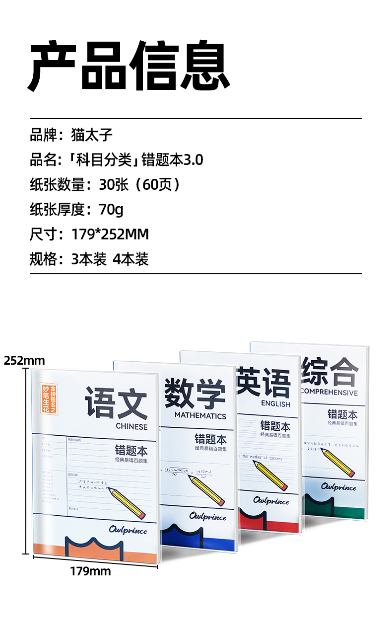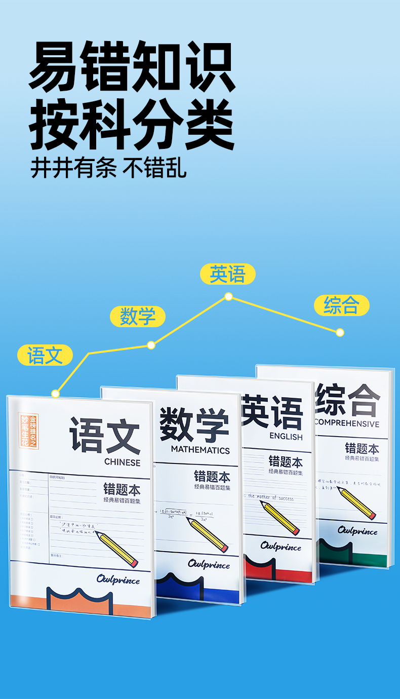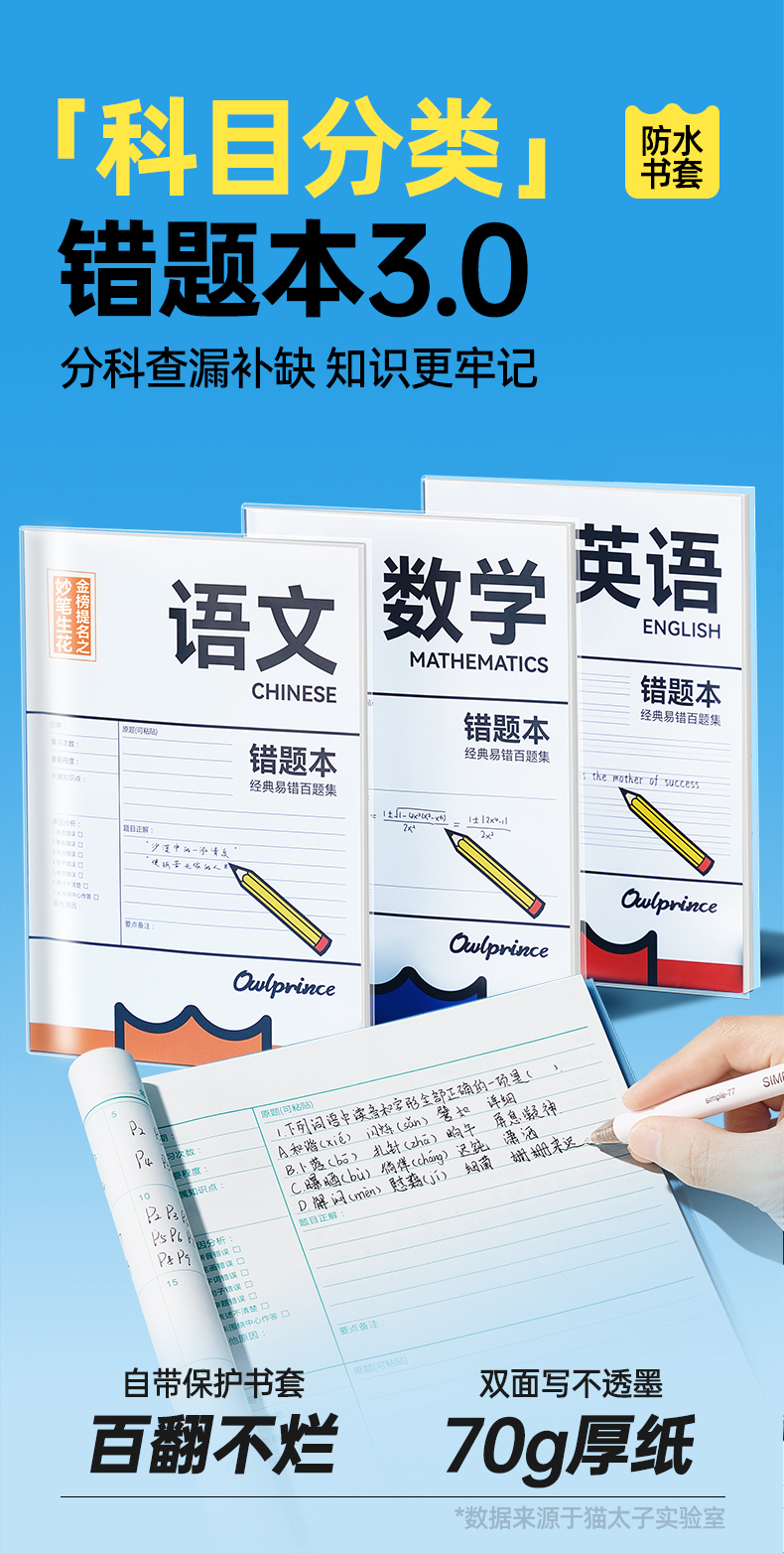 猫太子错题本书套防护记错本胶套易错百题集小学初高中生加厚全套学科笔记本改错题数学语文纠错科目练习本