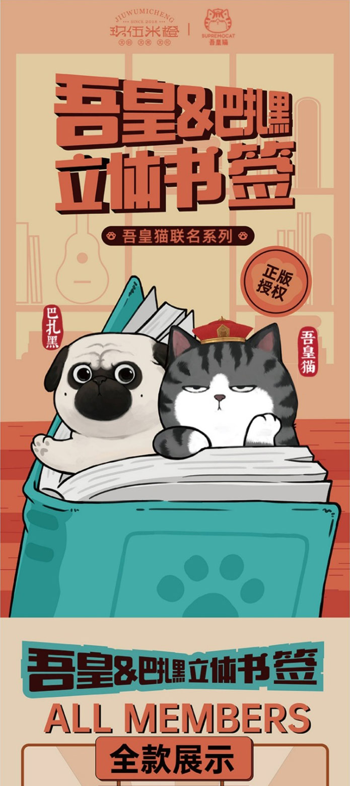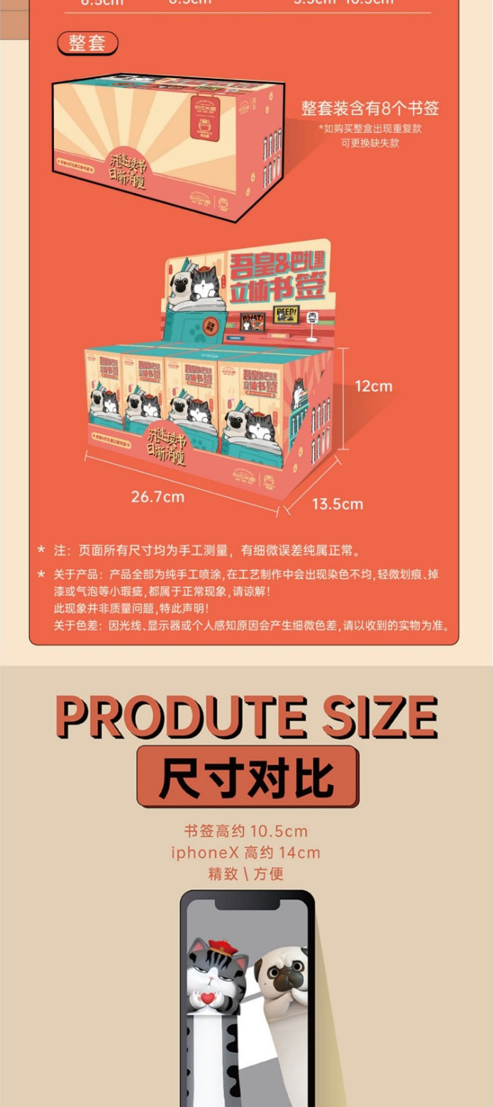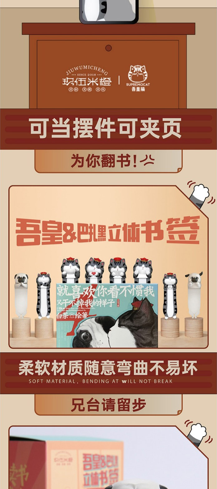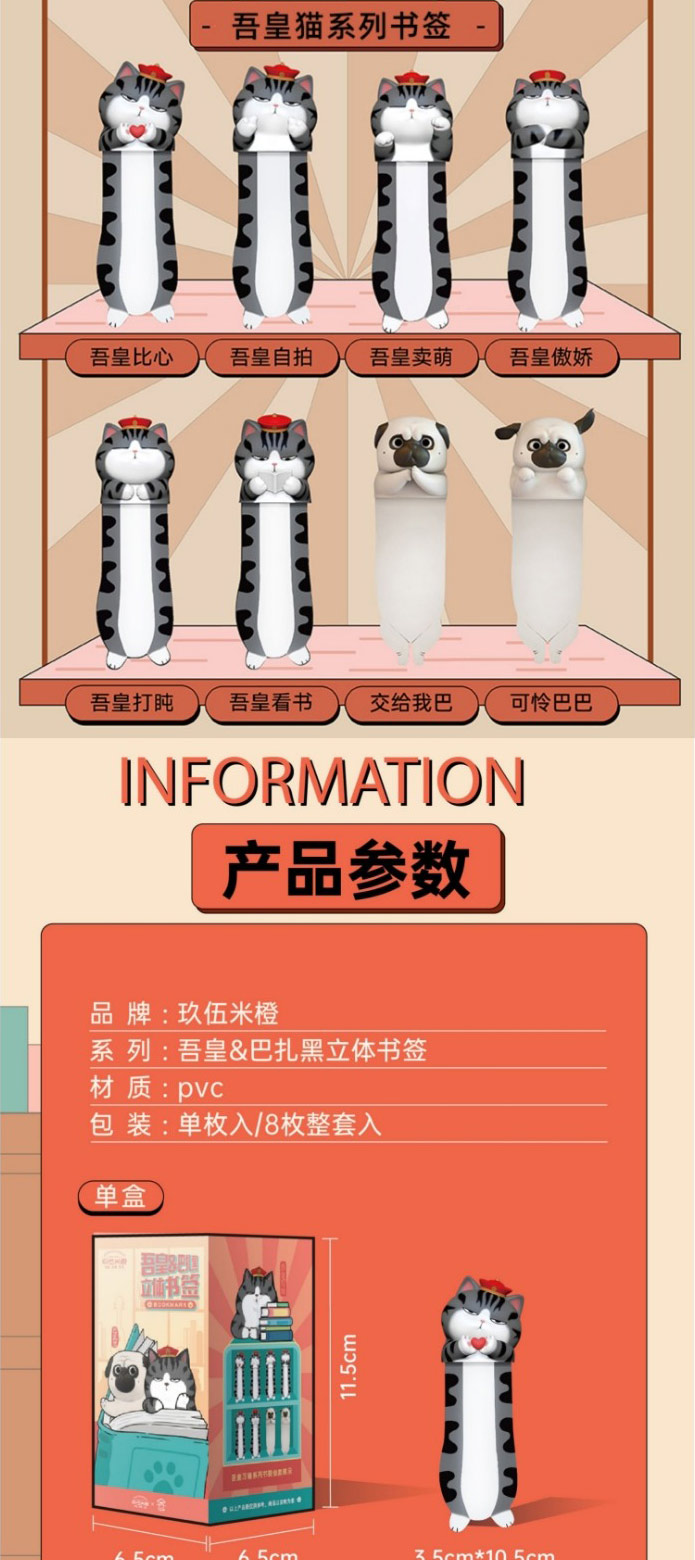 【玖伍米橙】吾皇万睡3d立体动物书签 学生用男生搞怪创意毕业开学礼品趣味可爱猫咪pvc巴扎黑卡通儿童节日送女生情侣礼物