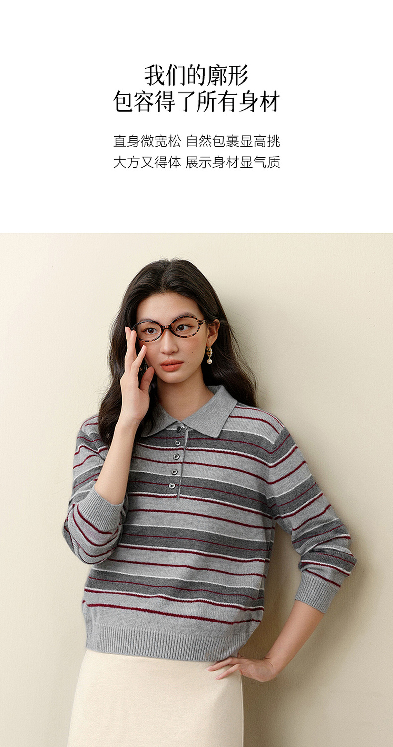 【严选】诗凡黎不规则撞色条纹Polo针织衫2025冬新款高智通勤显瘦长袖毛衣7GA433311