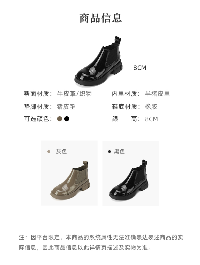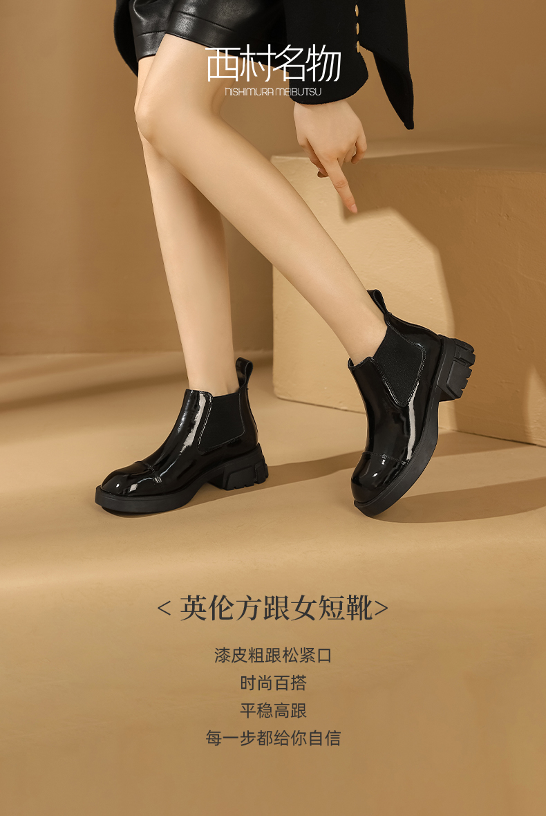 西村名物2023秋季新款切尔西靴厚底粗跟ins短靴马丁靴T23DS44061