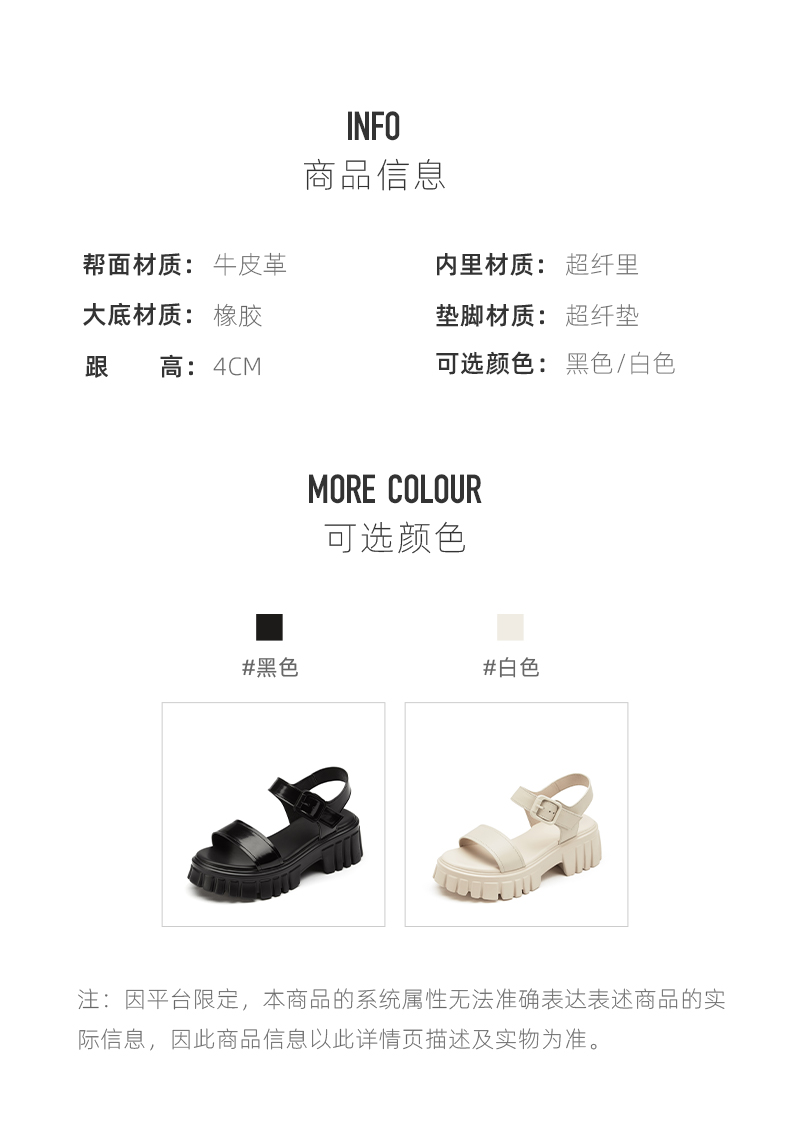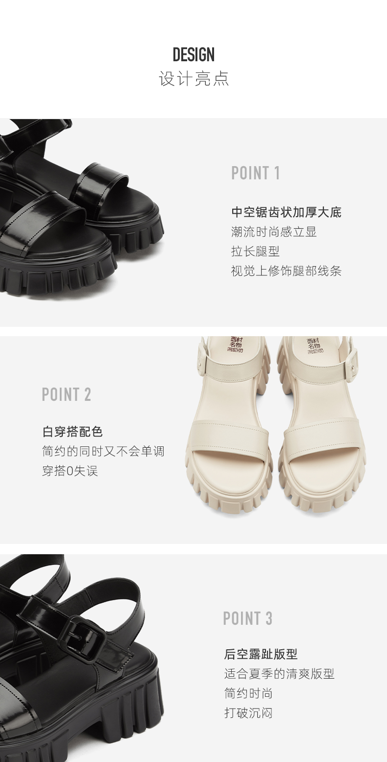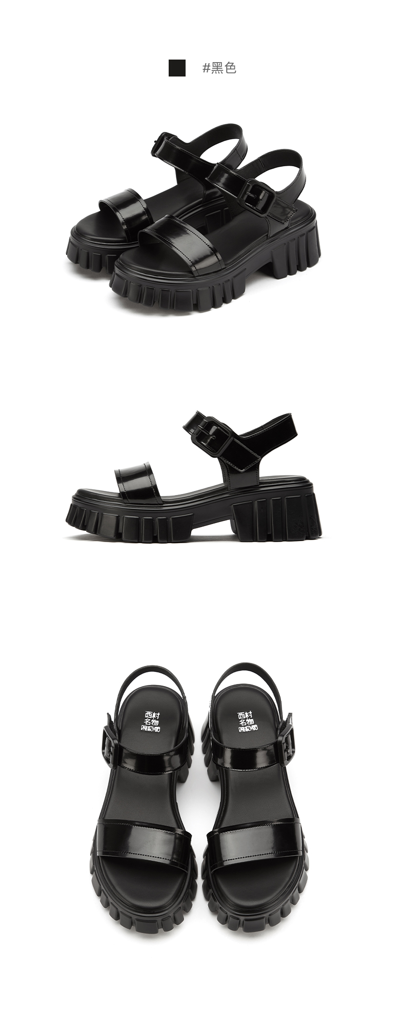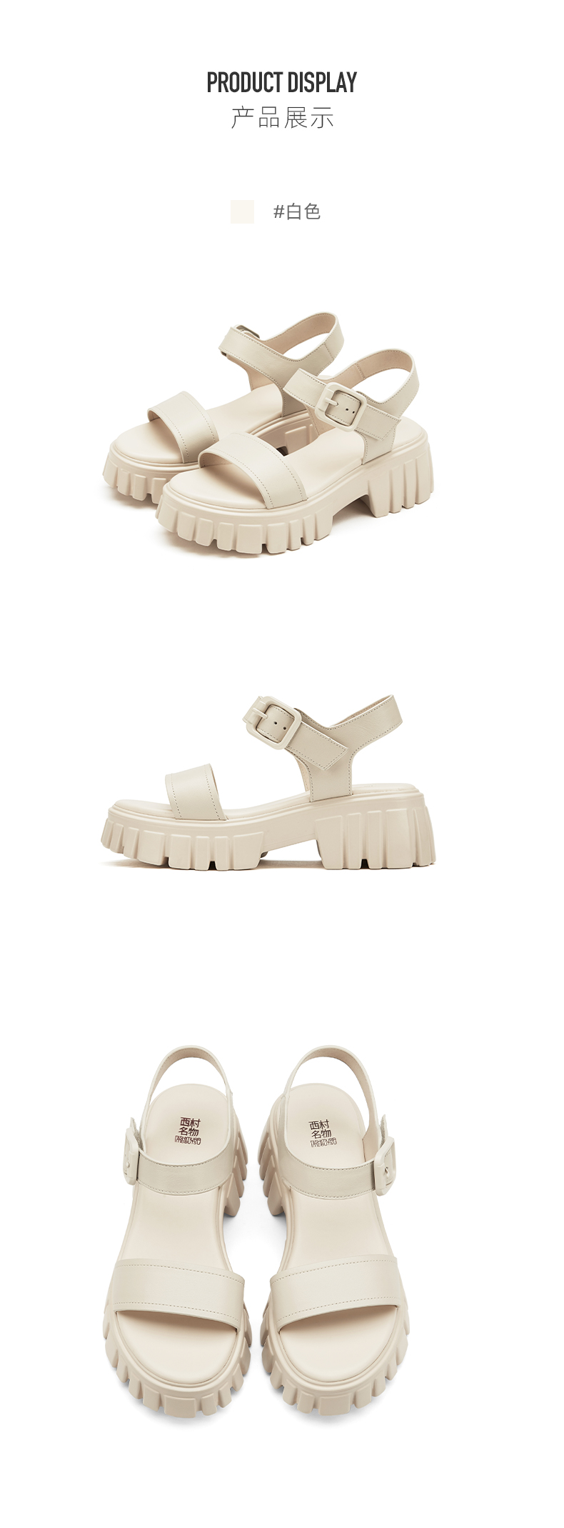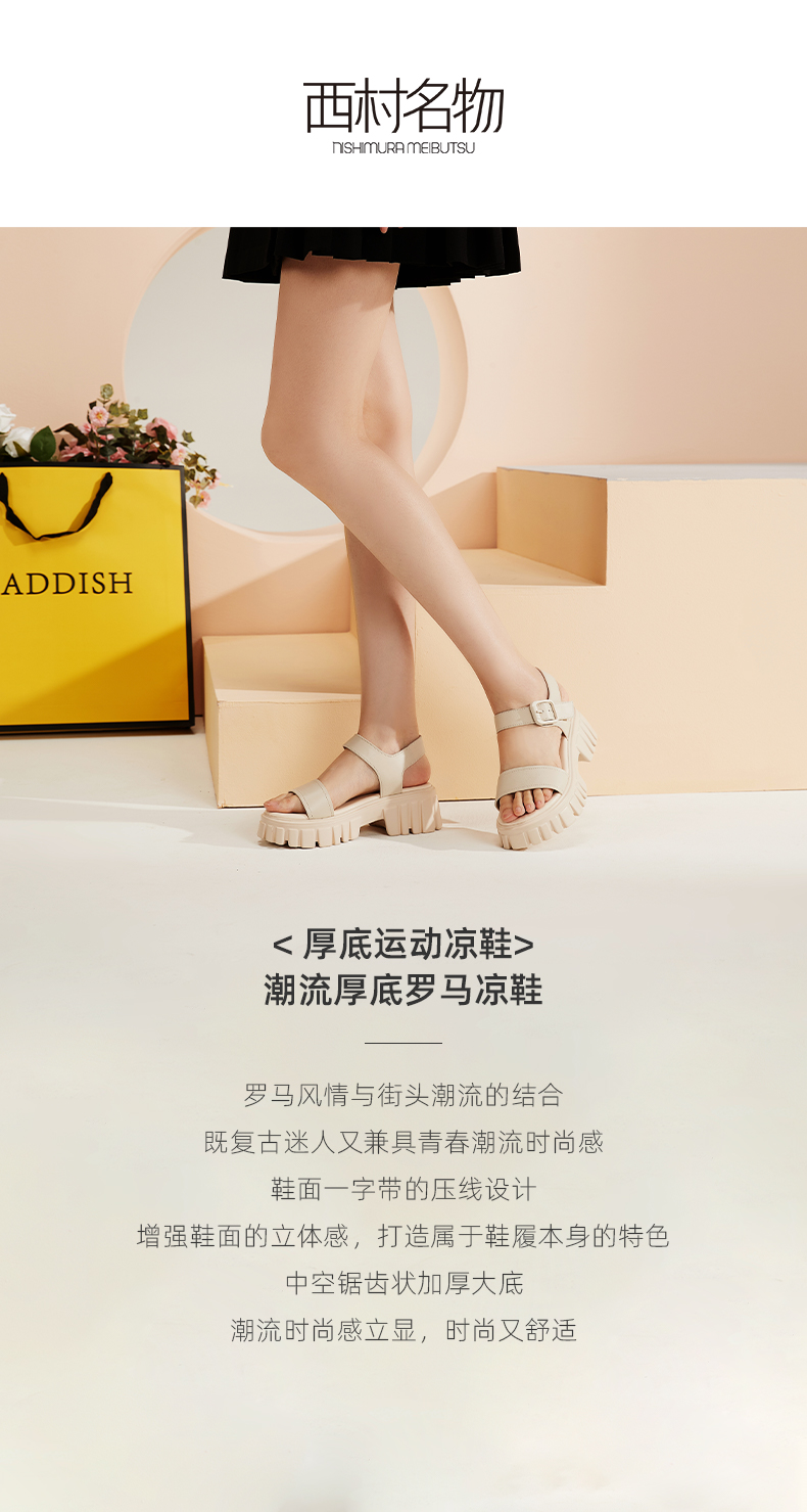 西村名物2021夏季新款厚底女鞋简约牛皮革方根休闲时尚凉鞋T21BG23421