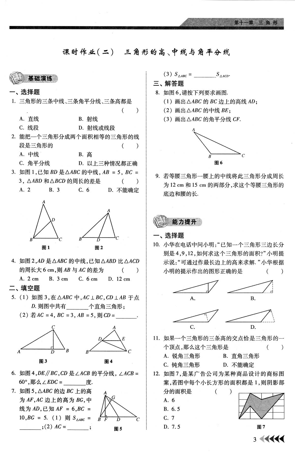 课时作业(二) 三角形的高、中线与角平分线