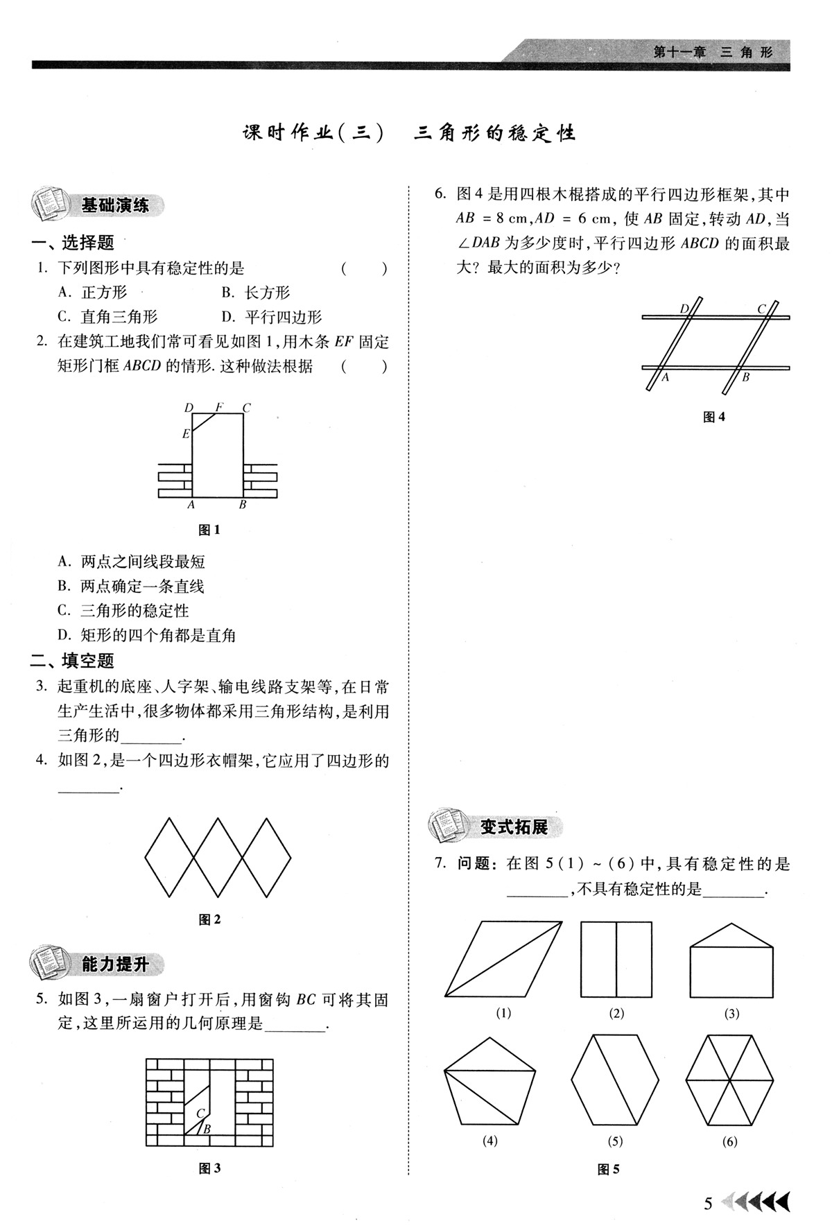课时作业(三) 三角形的稳定性