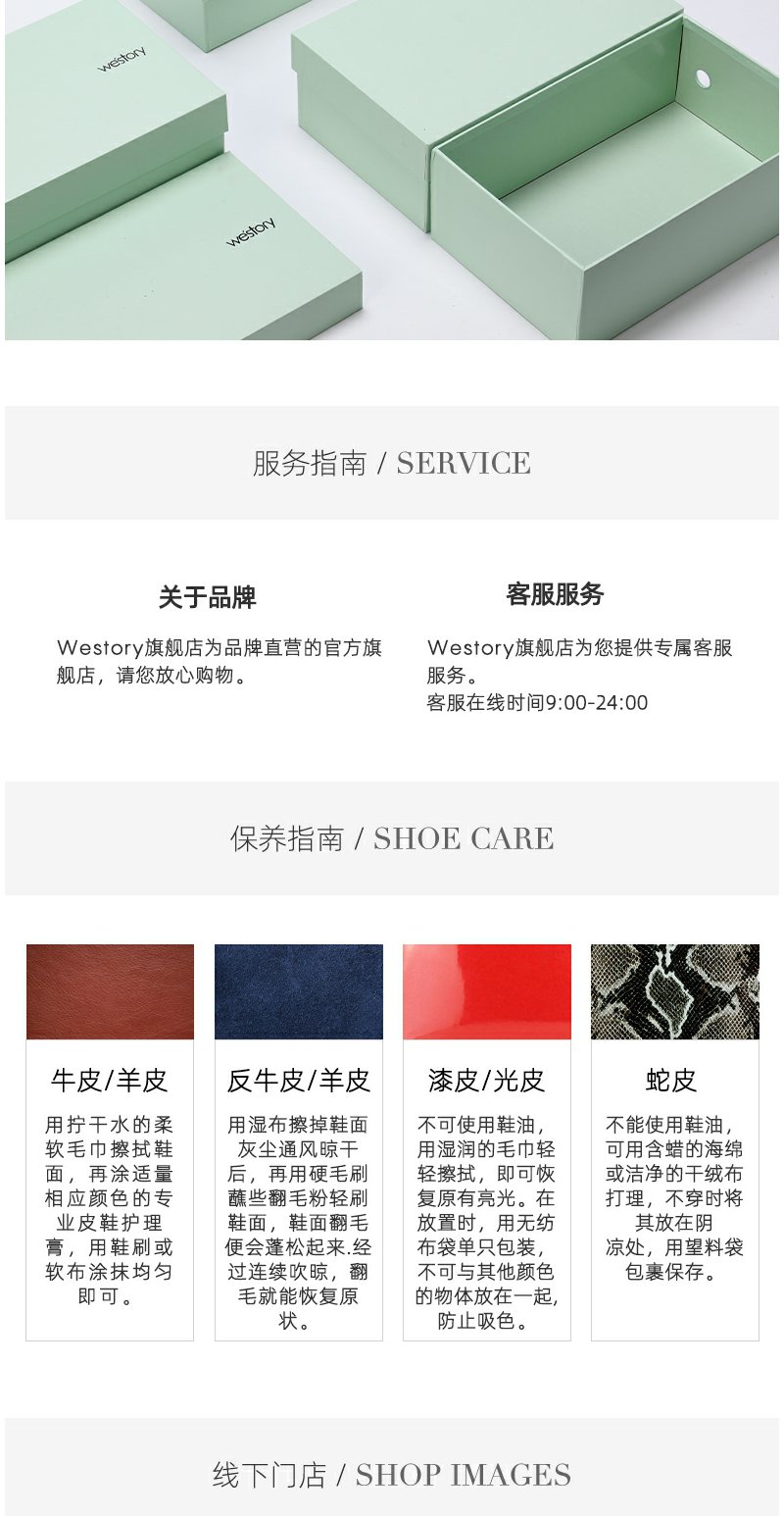 westory商场同款秋冬靴子软皮面粗跟尖头短筒靴子女W284S80561