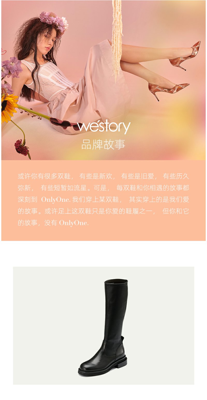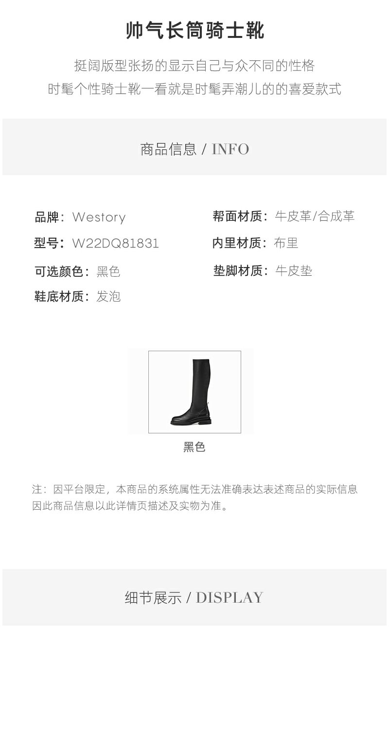 westory2022年秋冬新款黑色长靴小个子平底显瘦骑士靴女81831