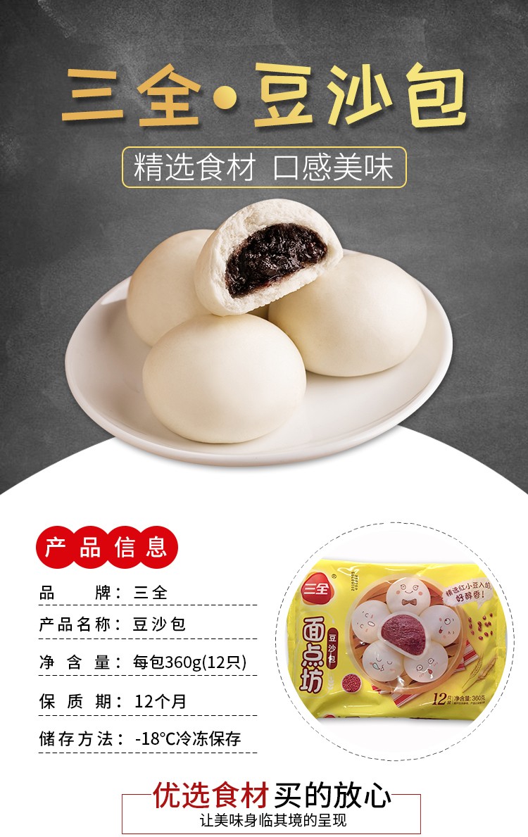【百】三全面点坊豆沙包 360g/袋