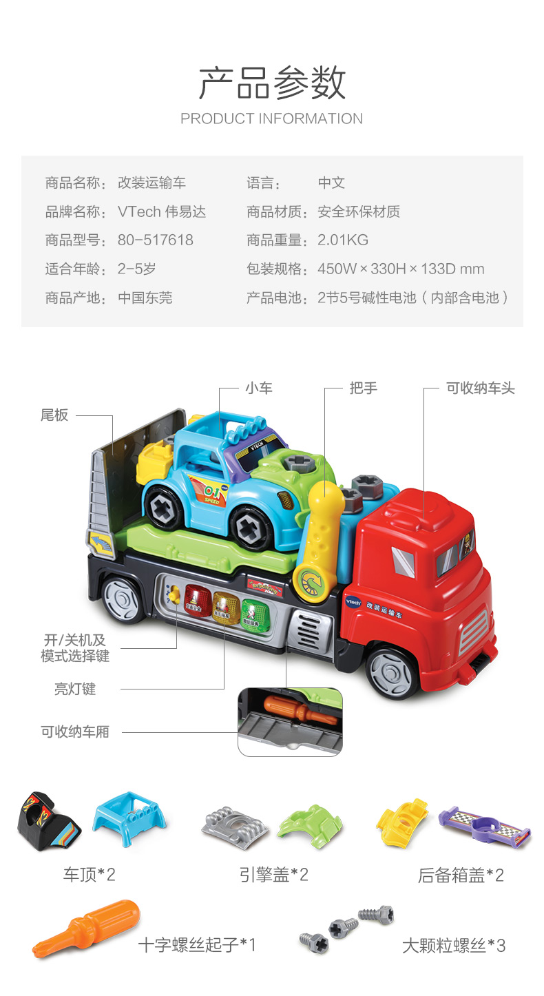 2-5岁 | VTech伟易达 改装运输车螺丝钉玩具动手可拆装卸螺母拼装组合益智男孩 2-5岁