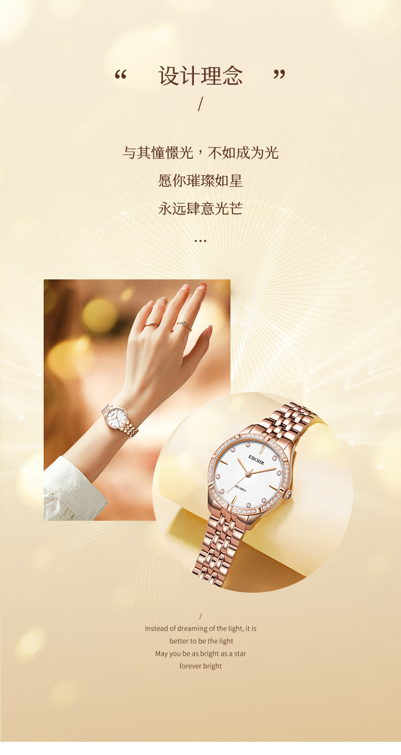 依波表EBOHR小金表手表女款轻奢高级石英表小众气质毕业礼物5677