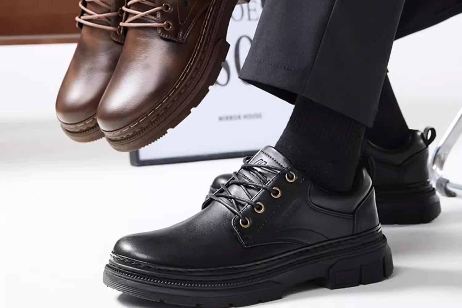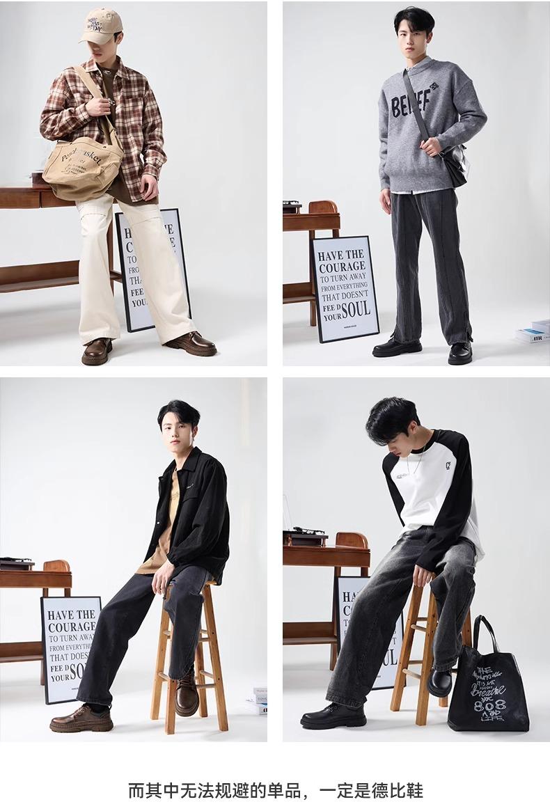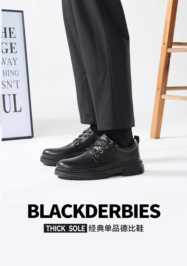 回力皮鞋男款秋冬新款英伦软底休闲男鞋商务伴郎男士黑色德比鞋子