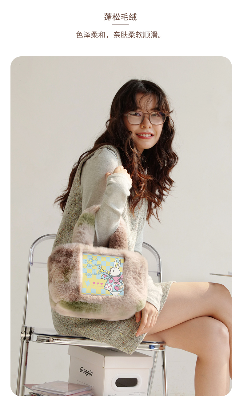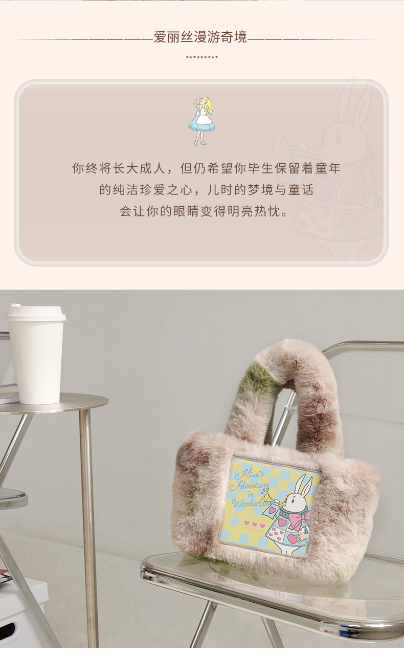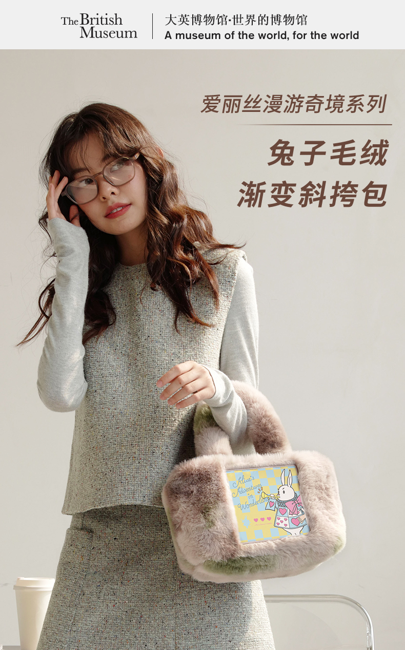 大英博物馆官方爱丽丝漫游奇境系列兔子毛绒渐变斜挎包单肩包