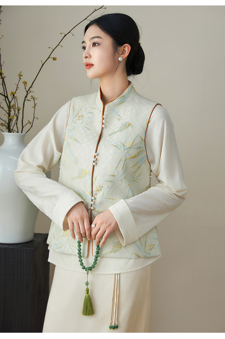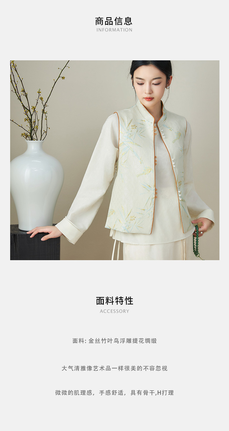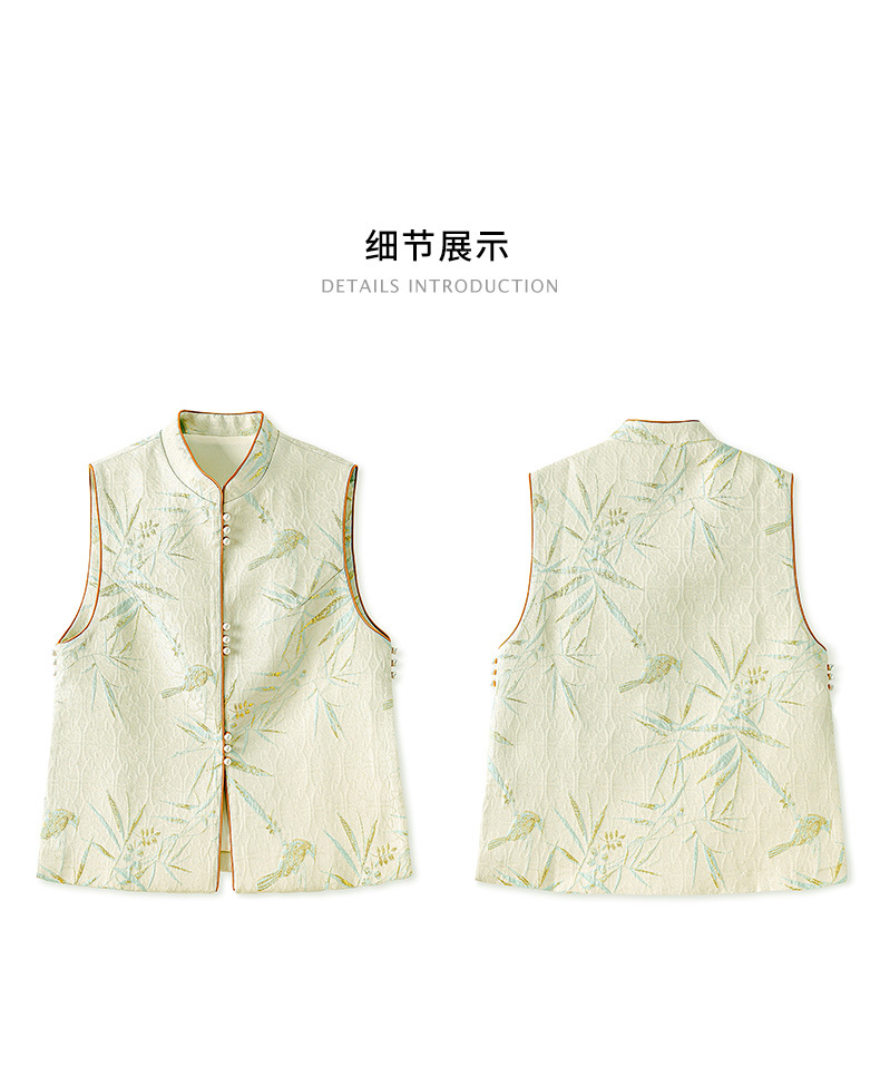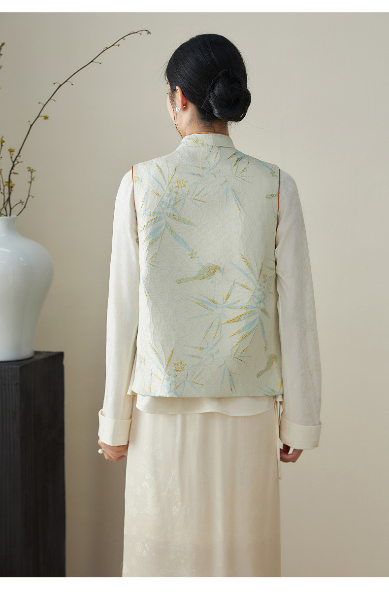 提花改良国风,新中式金丝竹叶鸟浮雕马甲WLZD-2411302
