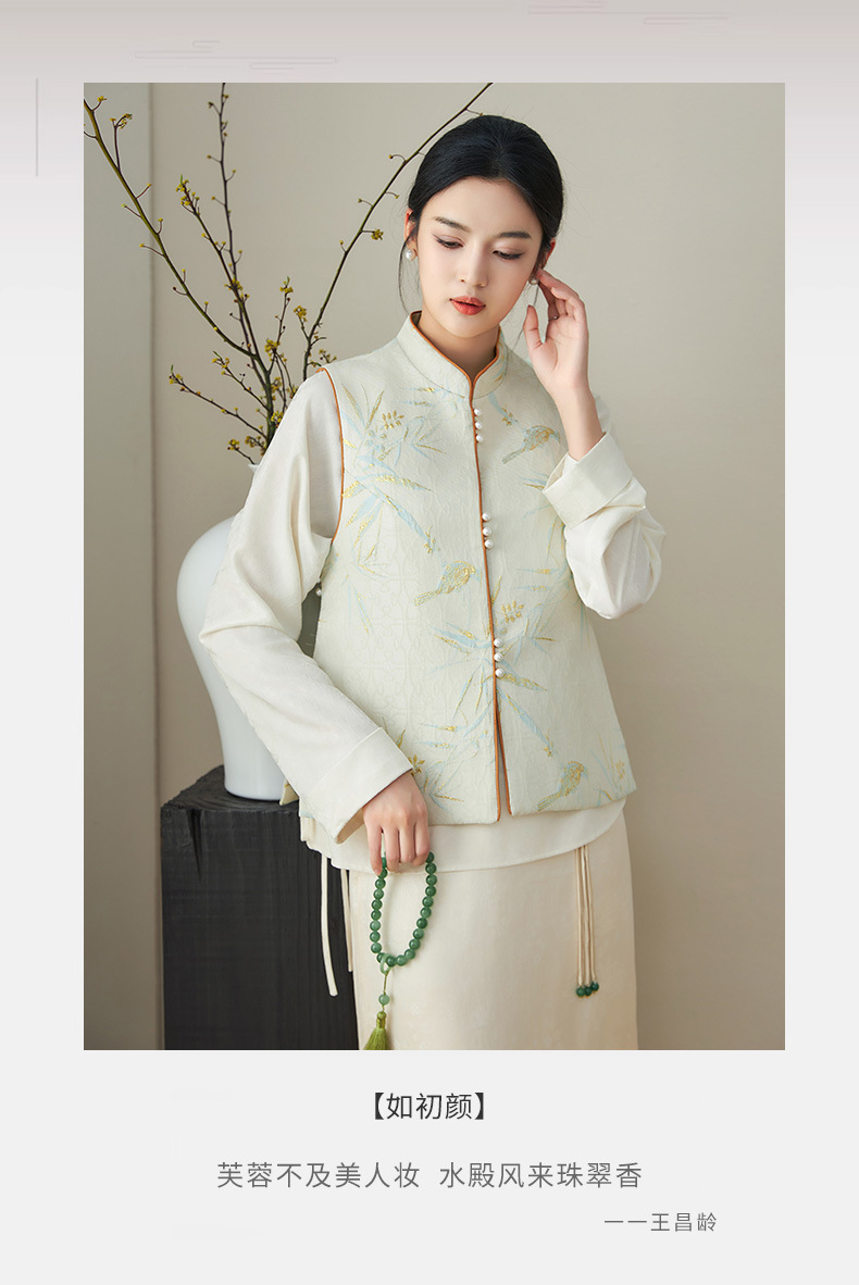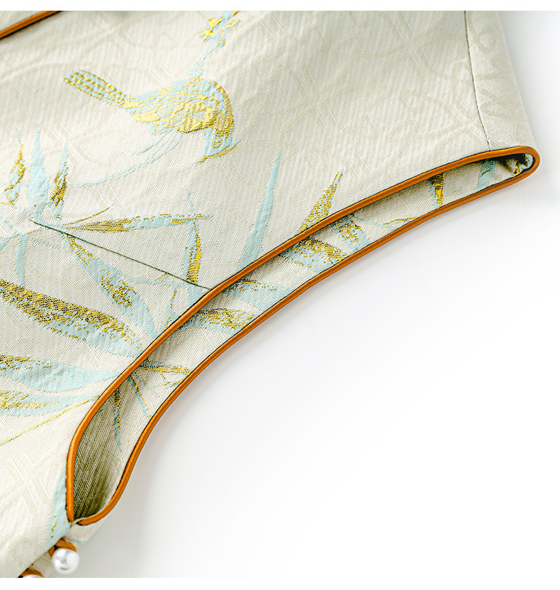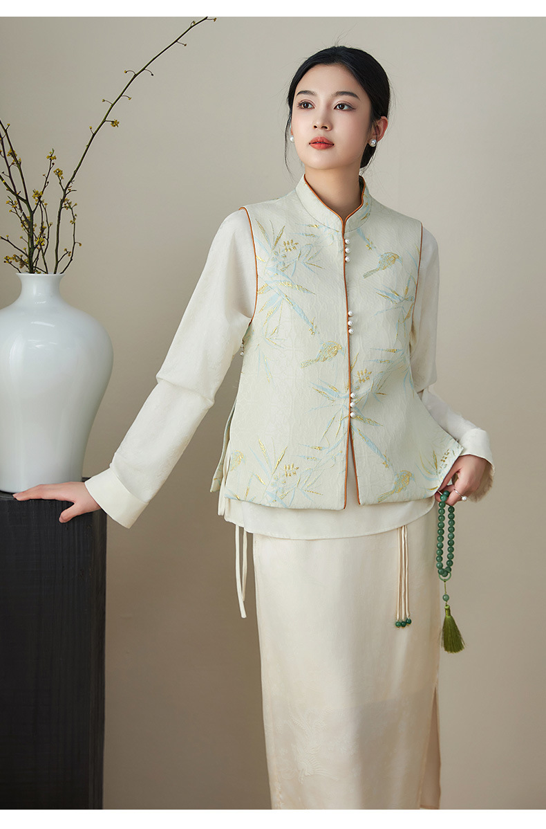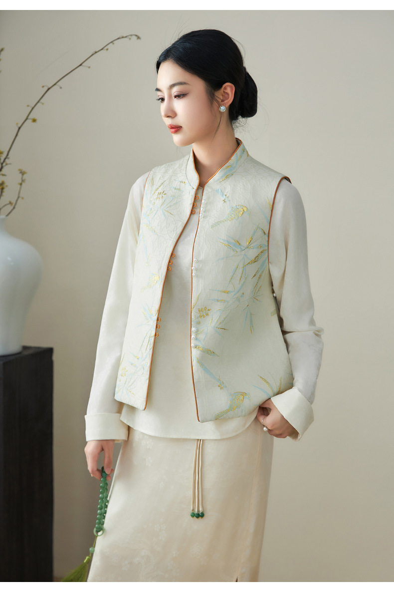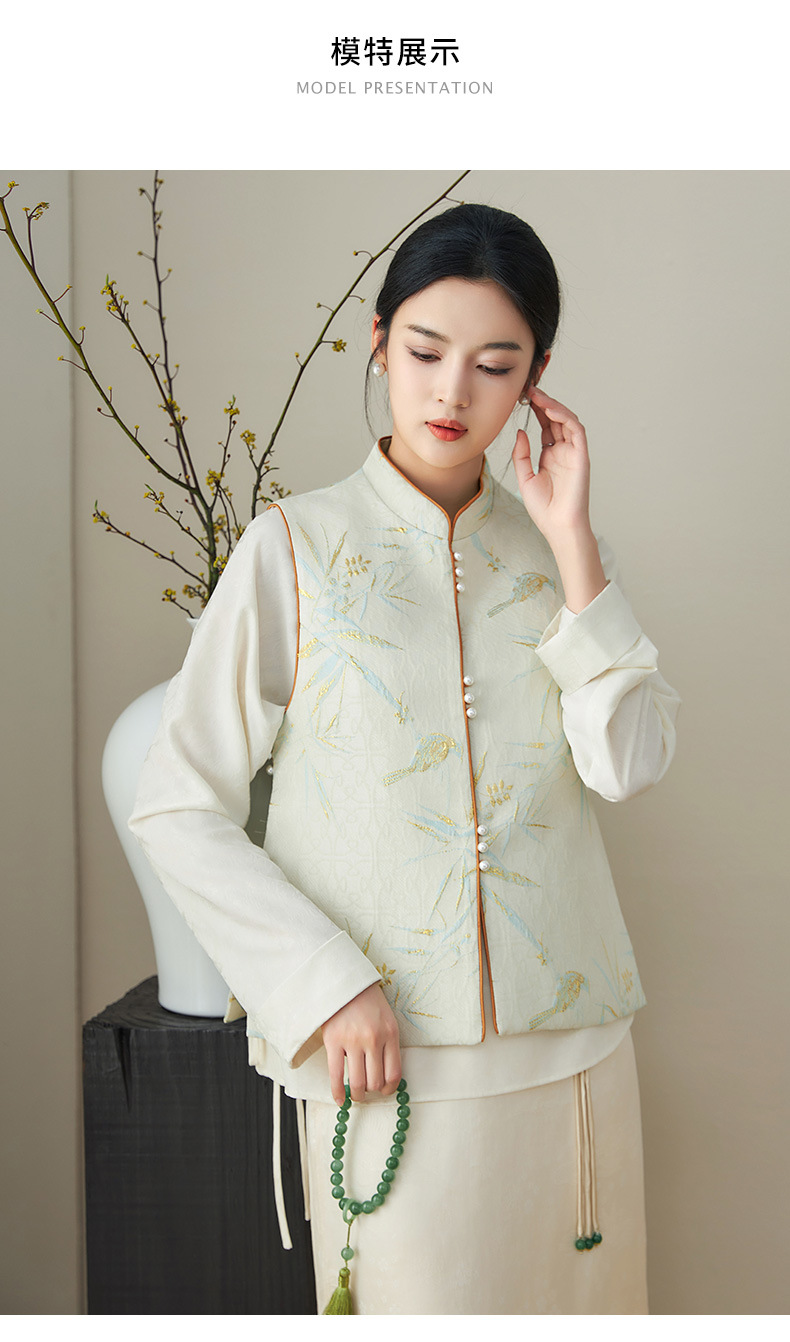提花改良国风,新中式金丝竹叶鸟浮雕马甲WLZD-2411302