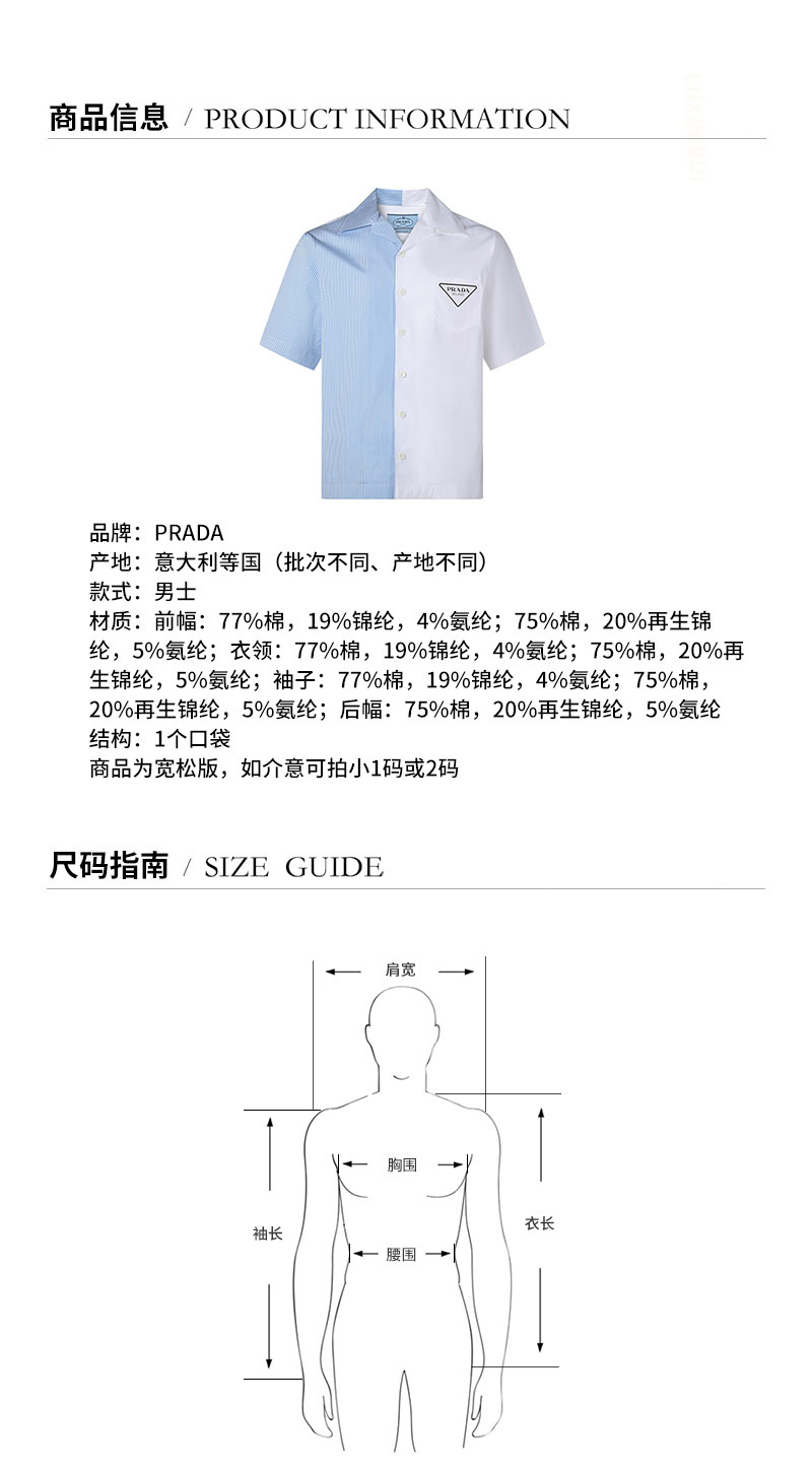 PRADA/普拉达【22春夏新款】男士棉质Double Match宽松版休闲短袖衬衫 UCS406 10HH S 212